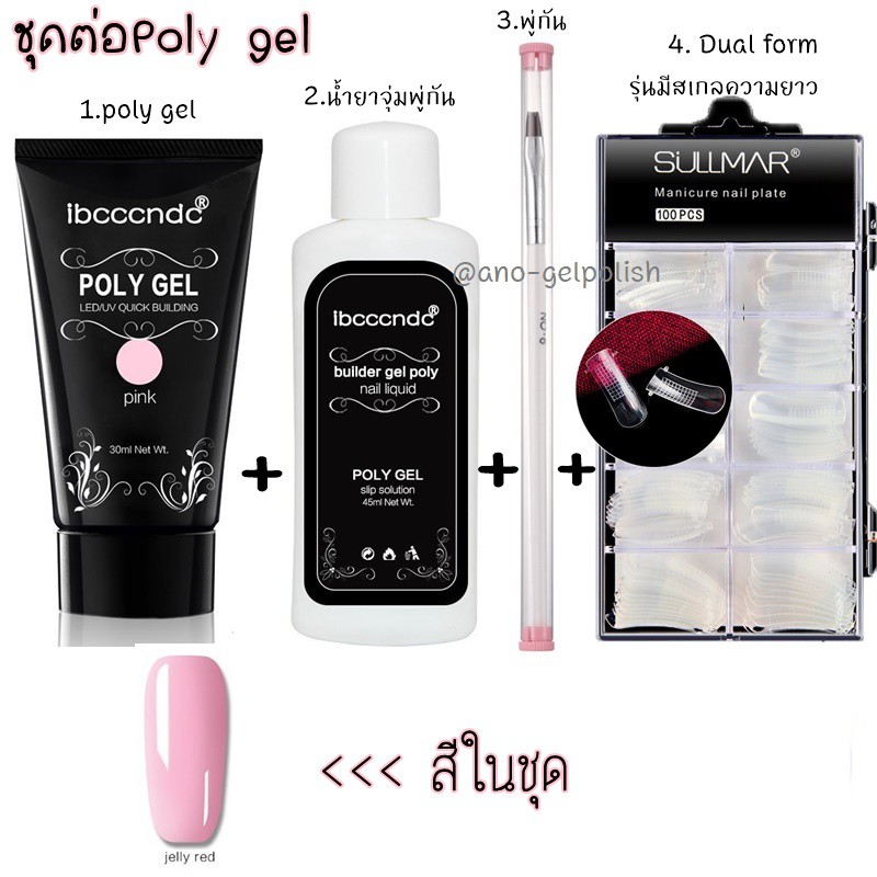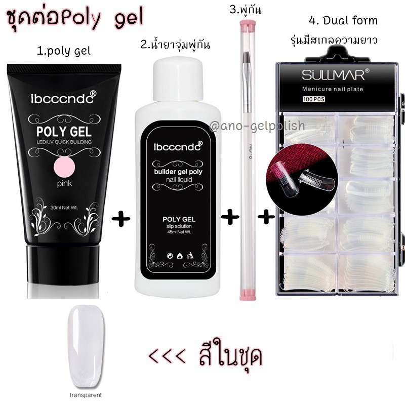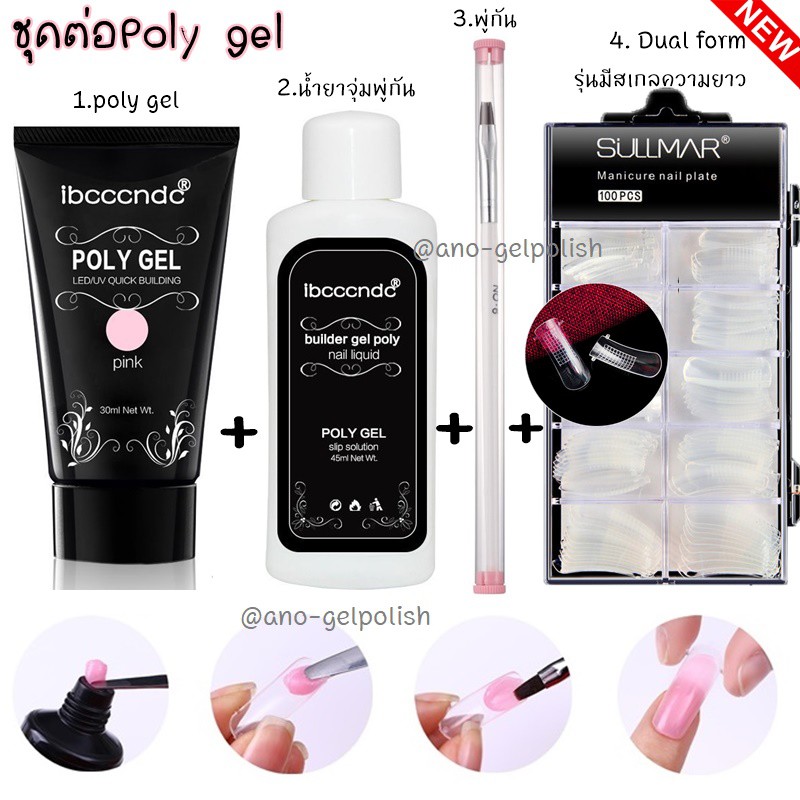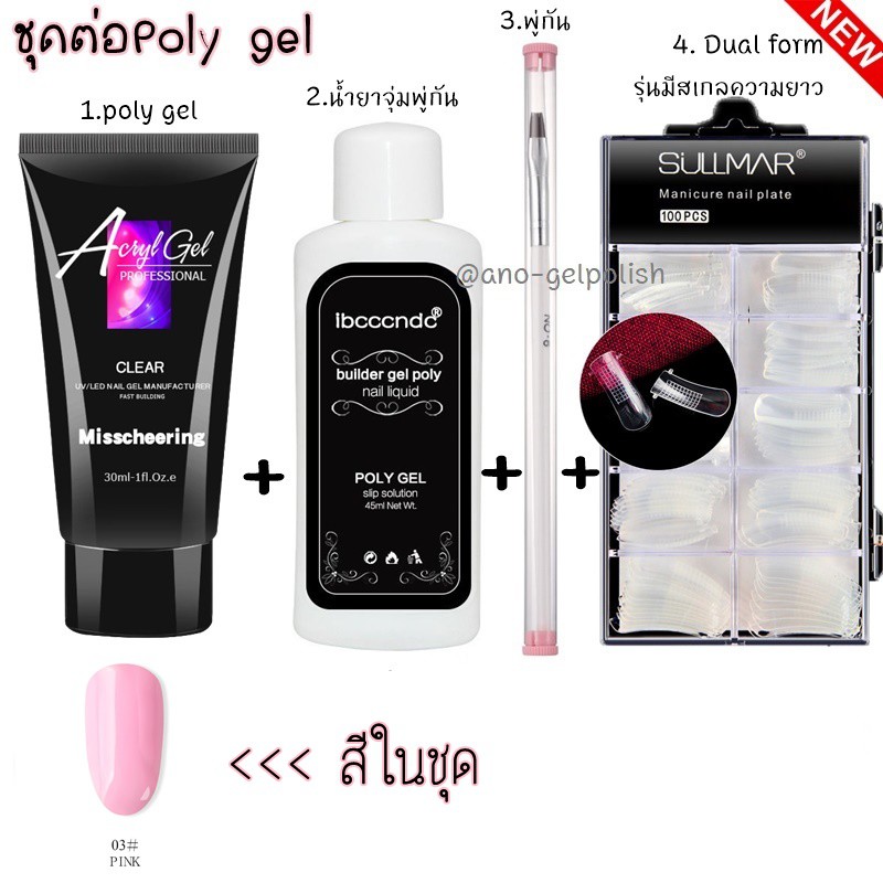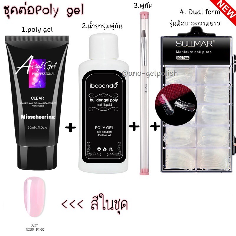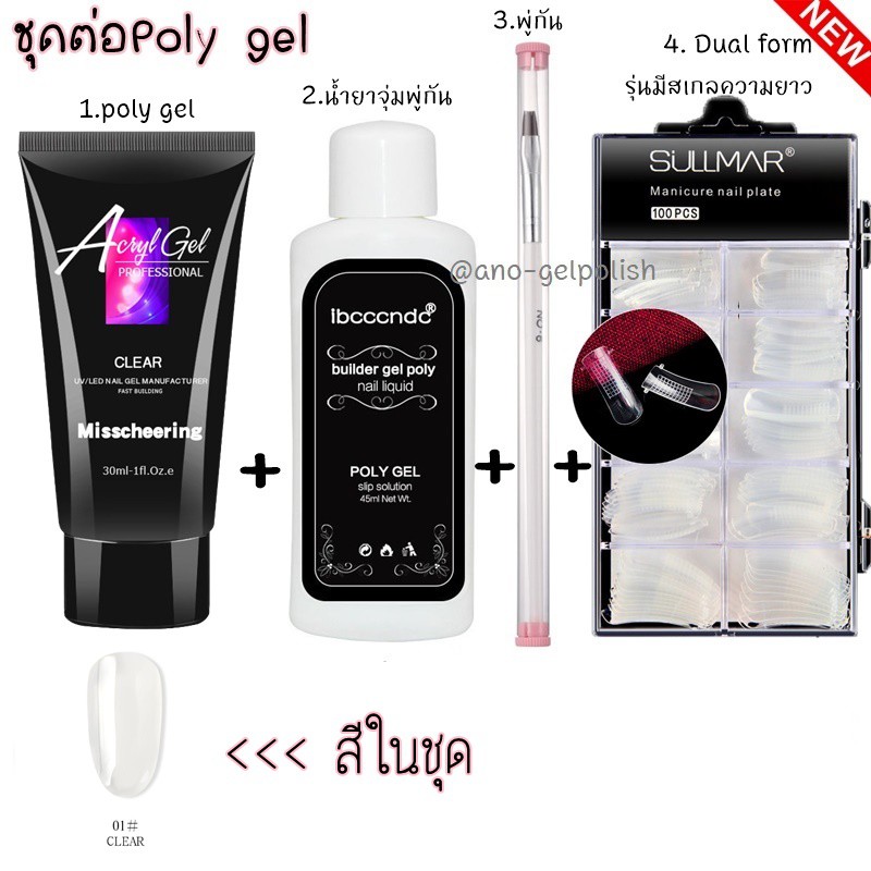 Poly gel ต่อเล็บ แบบจัดเซ็ต โพลี่เจล 1หลอด +Slip Solution+พู่กัน+Dual Form บล็อคต่อเจล