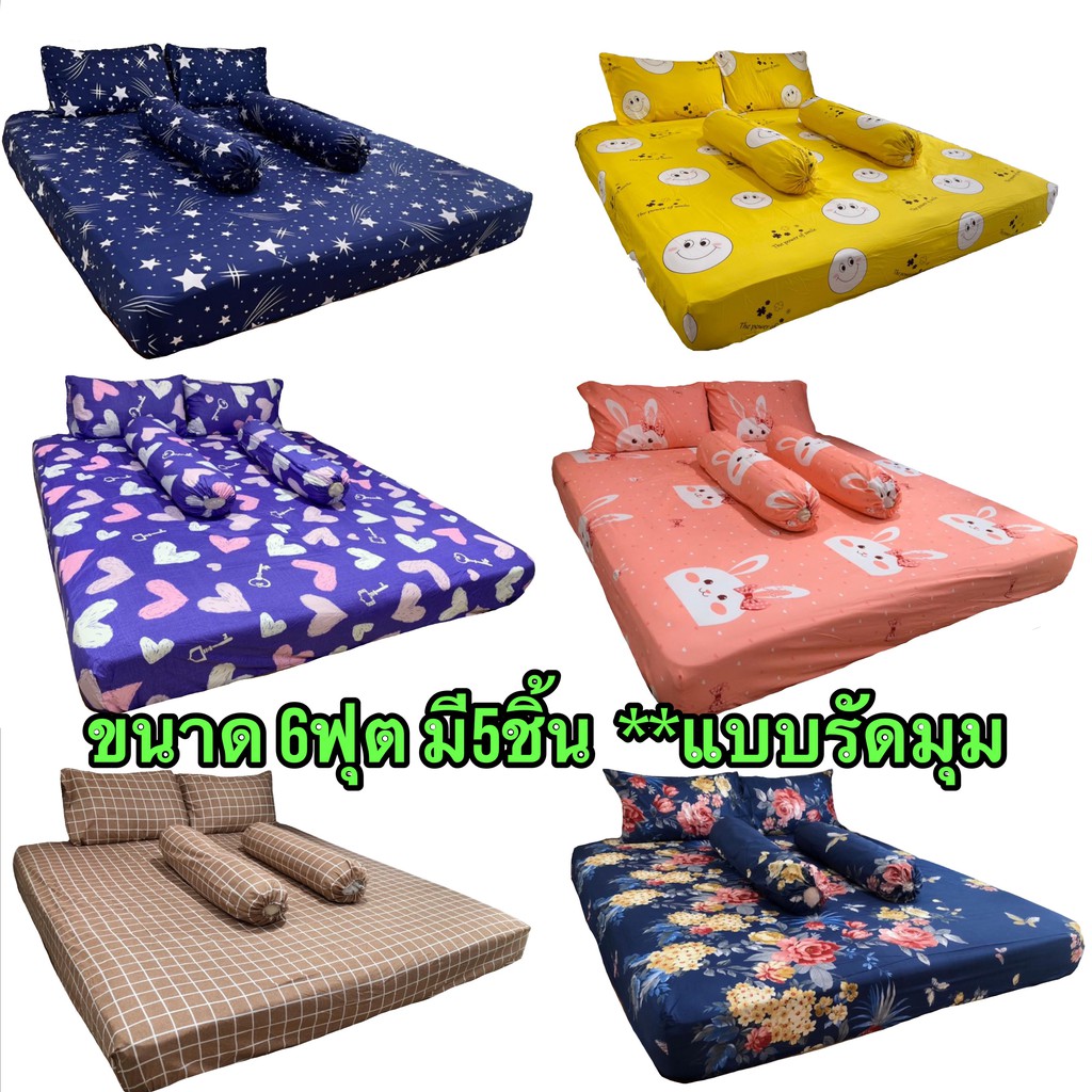 Bedsheet.BKK ผ้าปูที่นอน รวม6ฟุต ⭐️มี5ชิ้น เนื้อผ้านิ่ม สบายๆ ไม่ร้อน สีไม่ตก รหัส2366 / 666.