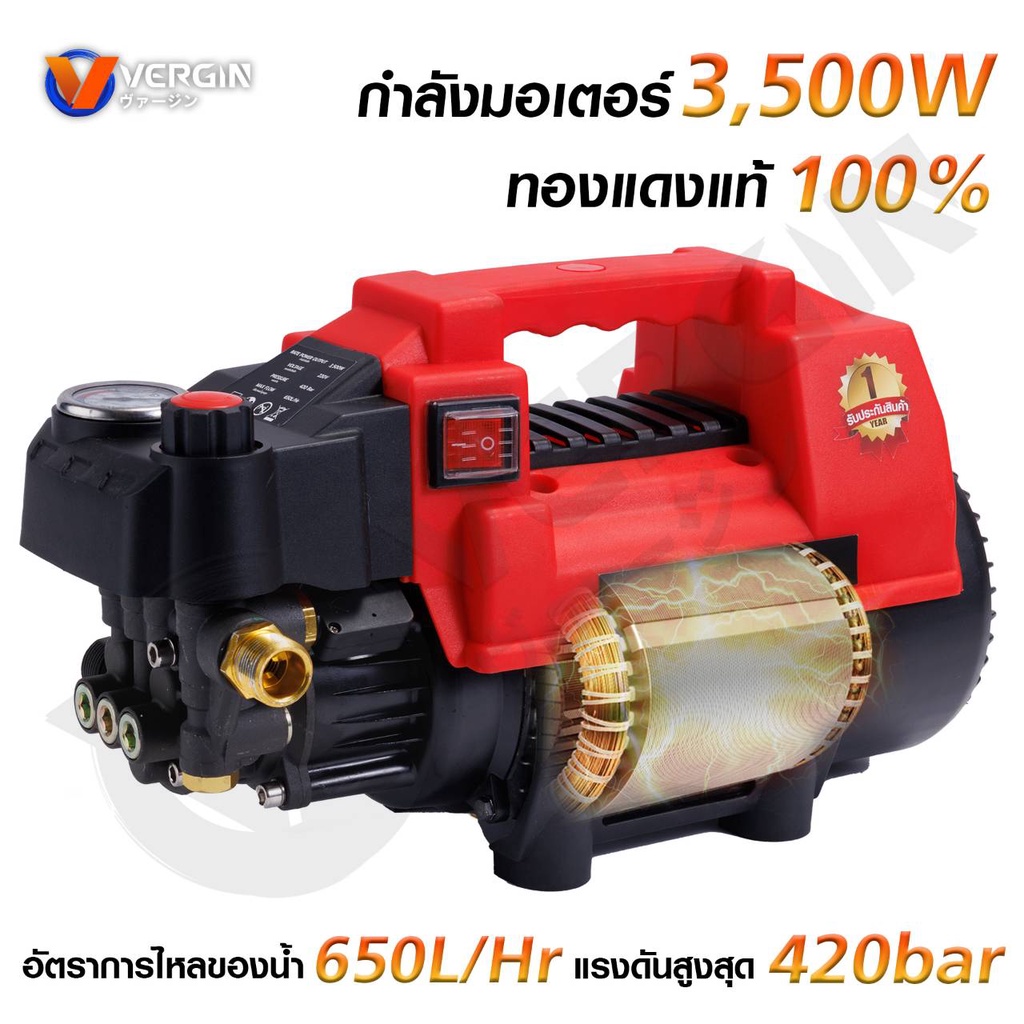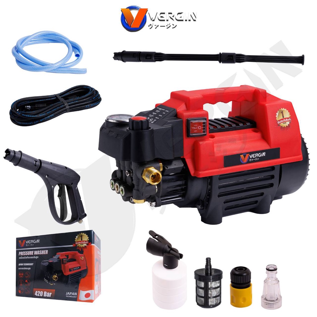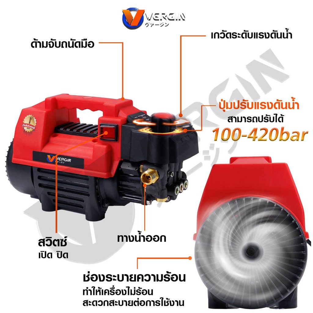 VERGIN เครื่องฉีดน้ำแรงดันสูง เครื่องฉีดล้าง 420 บาร์ ปรับแรงดันได้ มีระบบ Auto Stop System