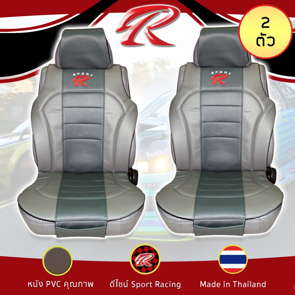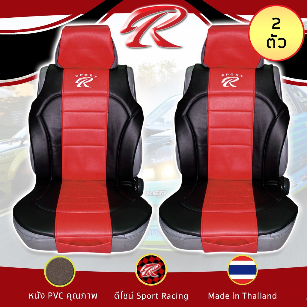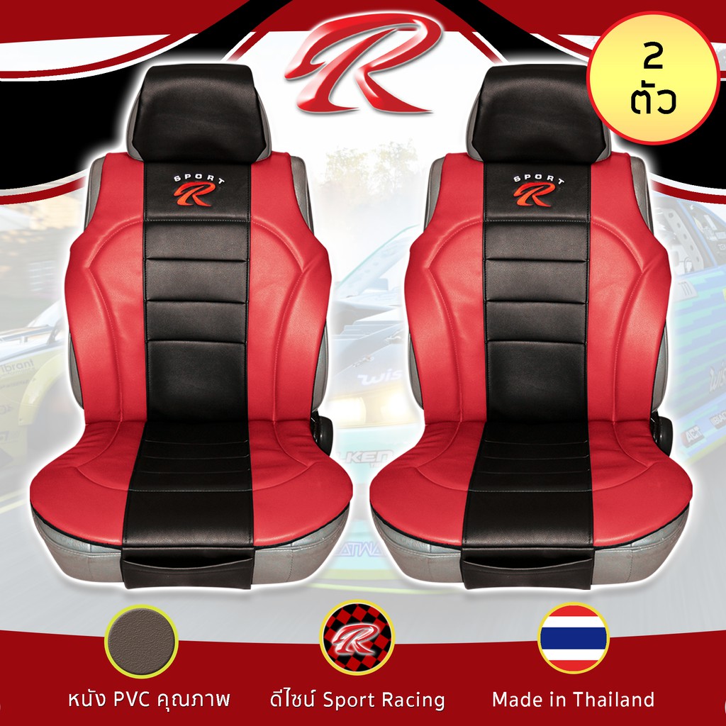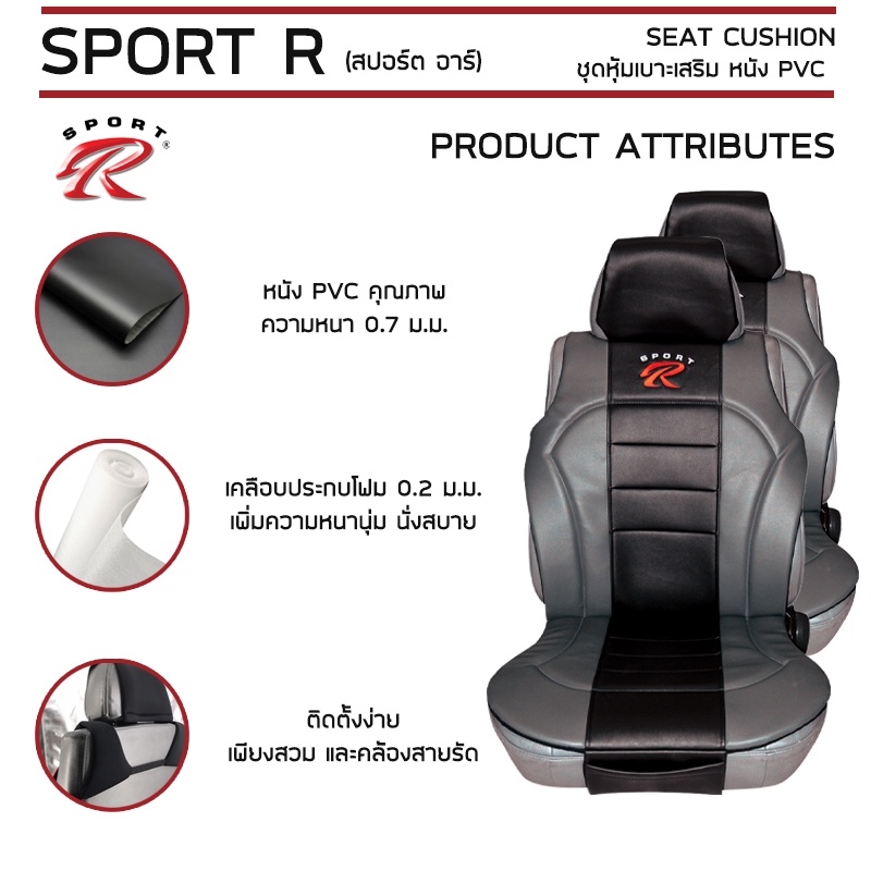 SPORT R ชุดหุ้มเบาะเสริม 2 ที่นั่ง PVC Plus ชุดหุ้มเบาะรถยนต์ แบบครึ่งตัว Seat Cushion หนัง PVC Laminated ฟรีไซส์ |