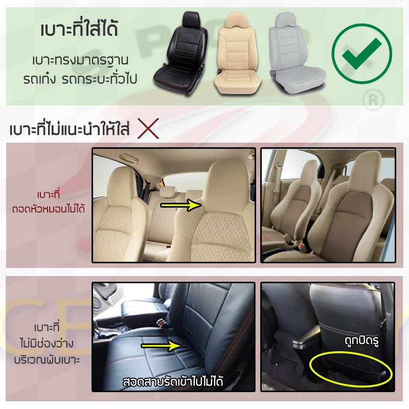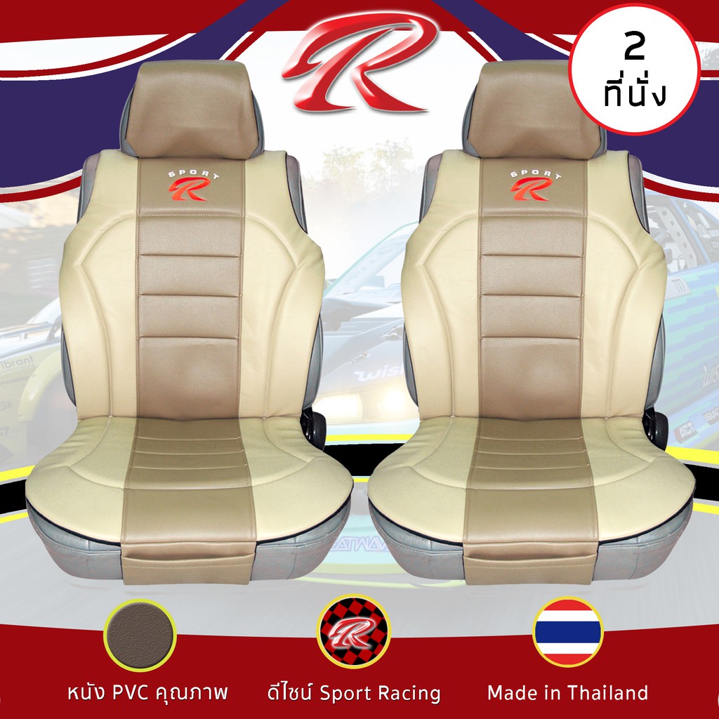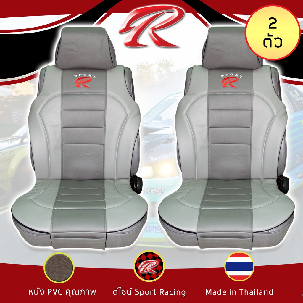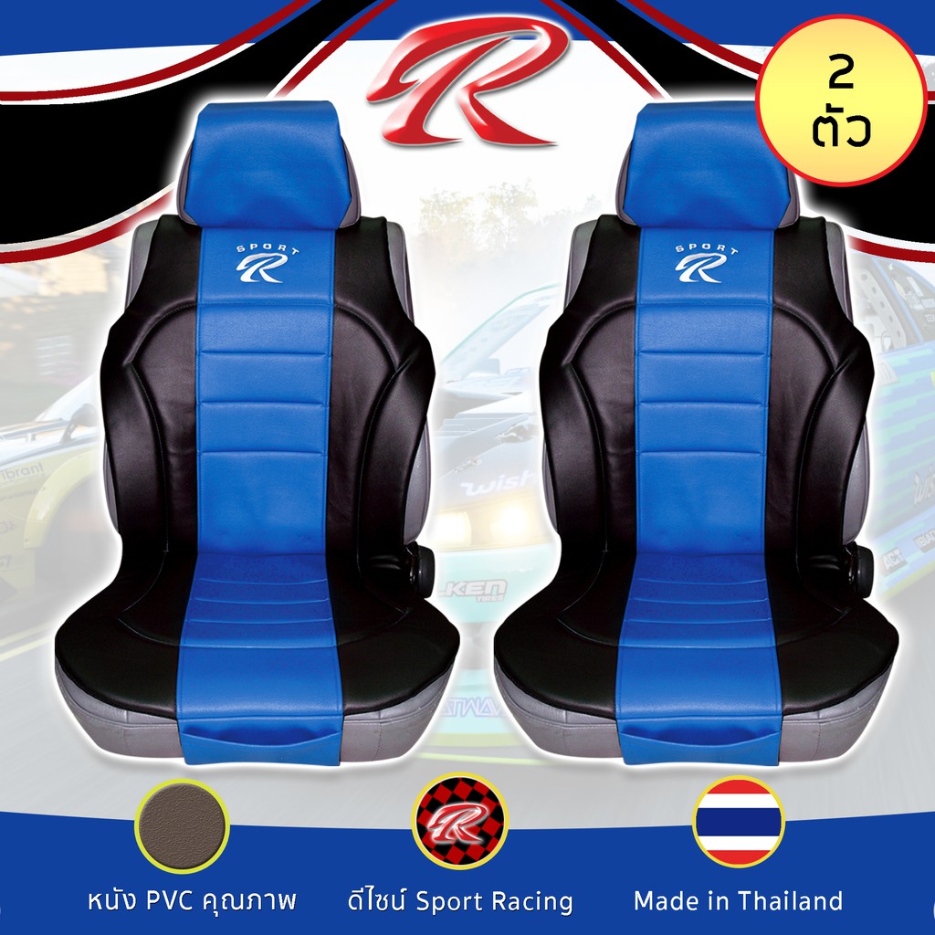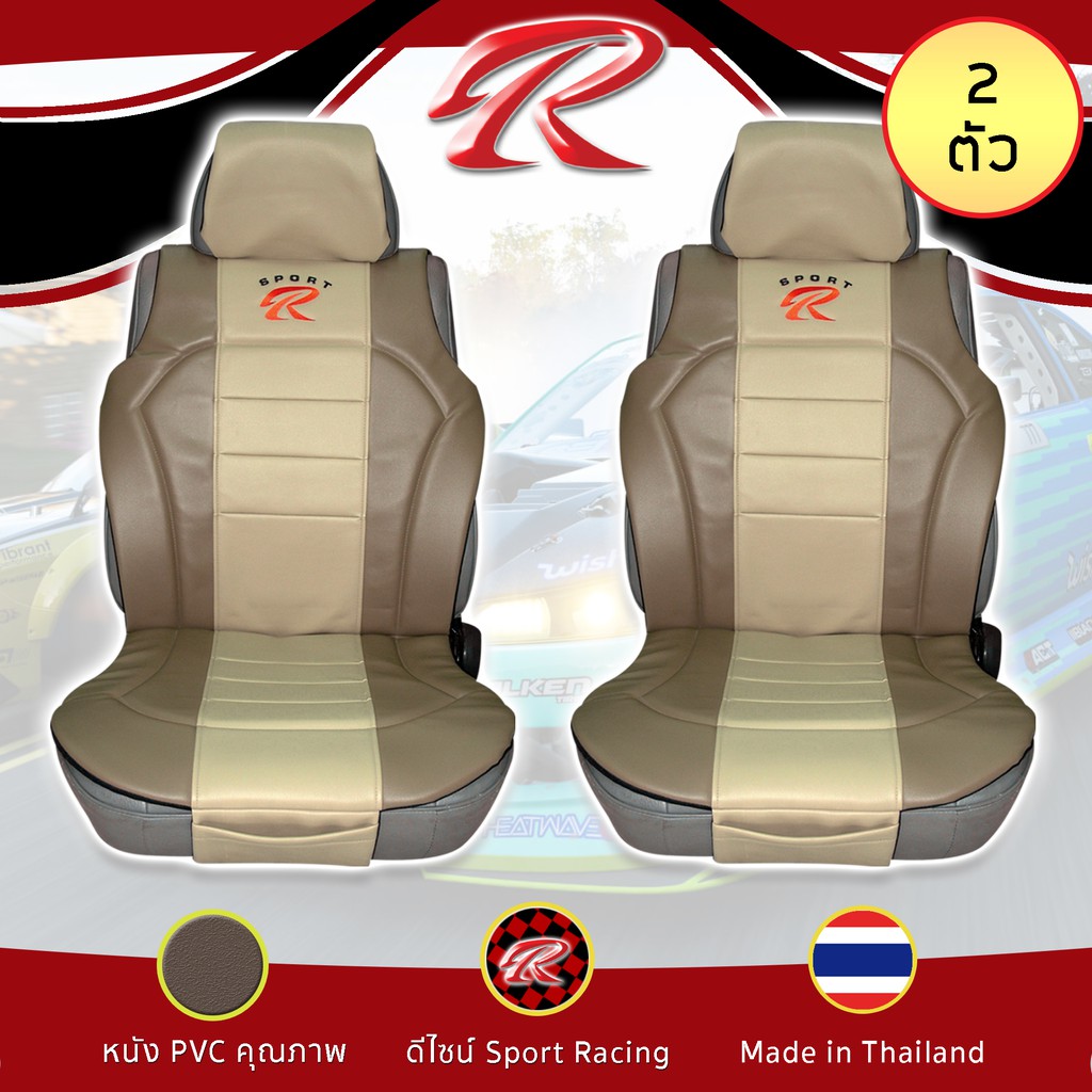 SPORT R ชุดหุ้มเบาะเสริม 2 ที่นั่ง PVC Plus ชุดหุ้มเบาะรถยนต์ แบบครึ่งตัว Seat Cushion หนัง PVC Laminated ฟรีไซส์ |