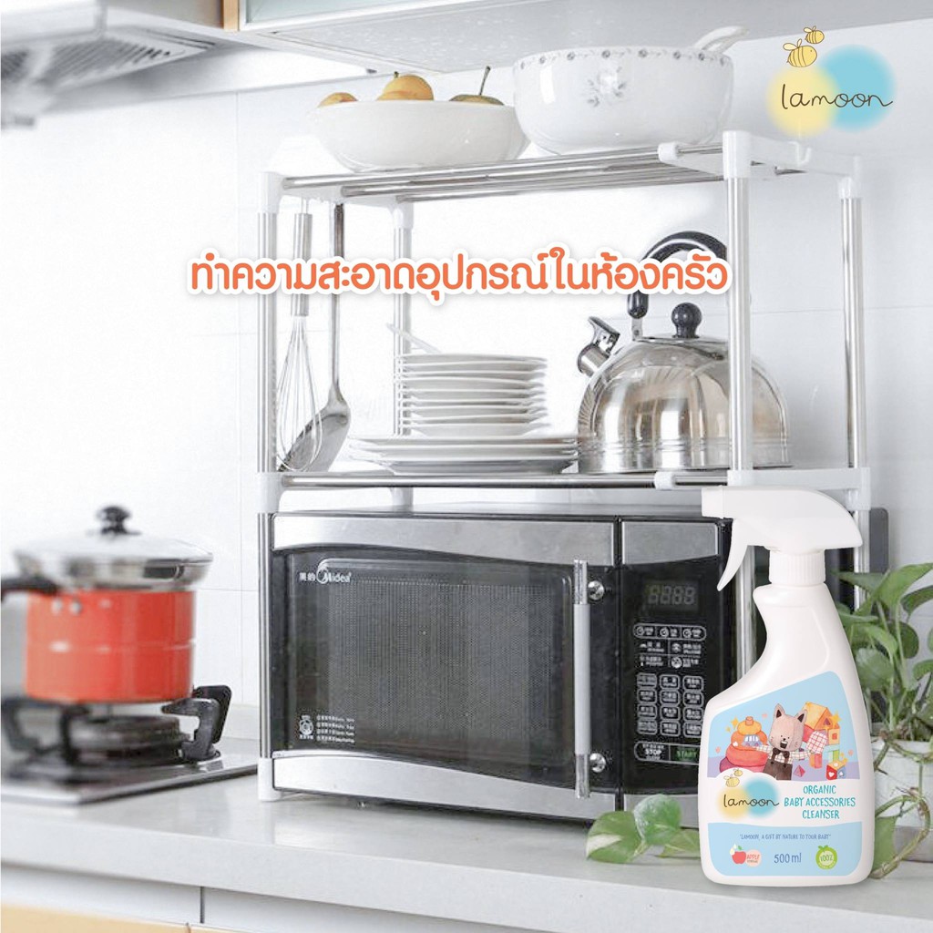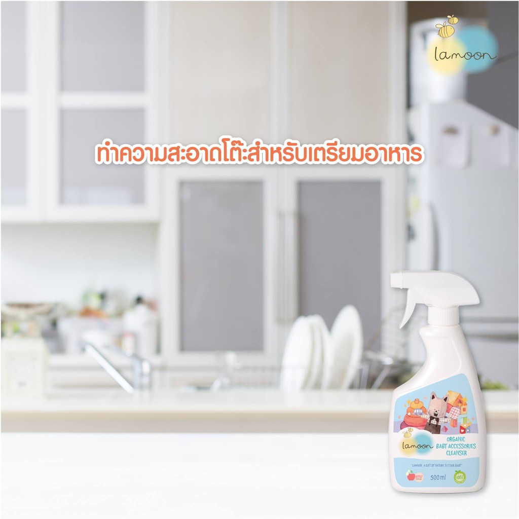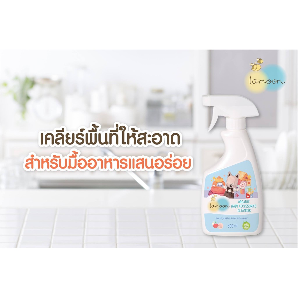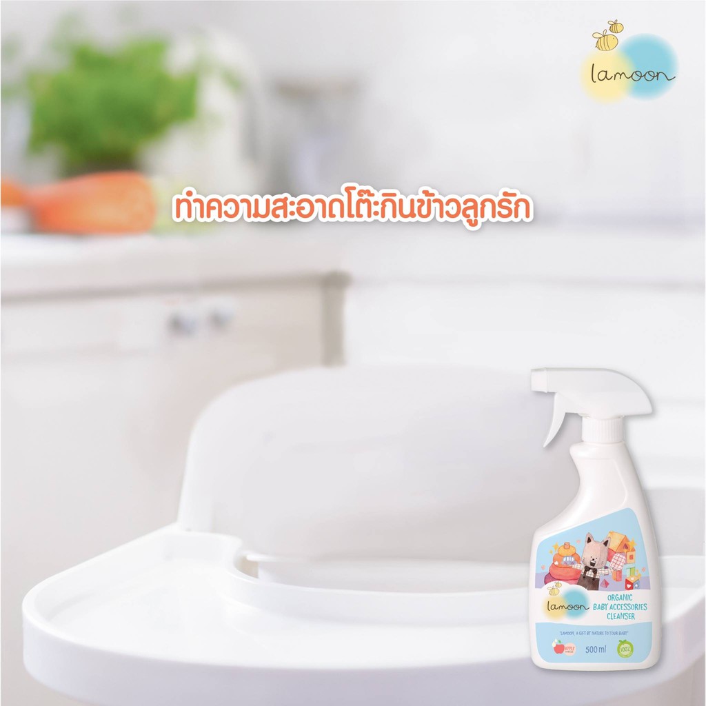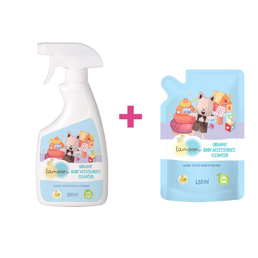 แพคคู่ ละมุนสเปรย์น้ำยาเช็ดทำความสะอาดของเล่น ของใช้เด็ก Lamoon Organic Baby Accessories Cleanser ขวดสเปรย์ + ถุงรีฟิล