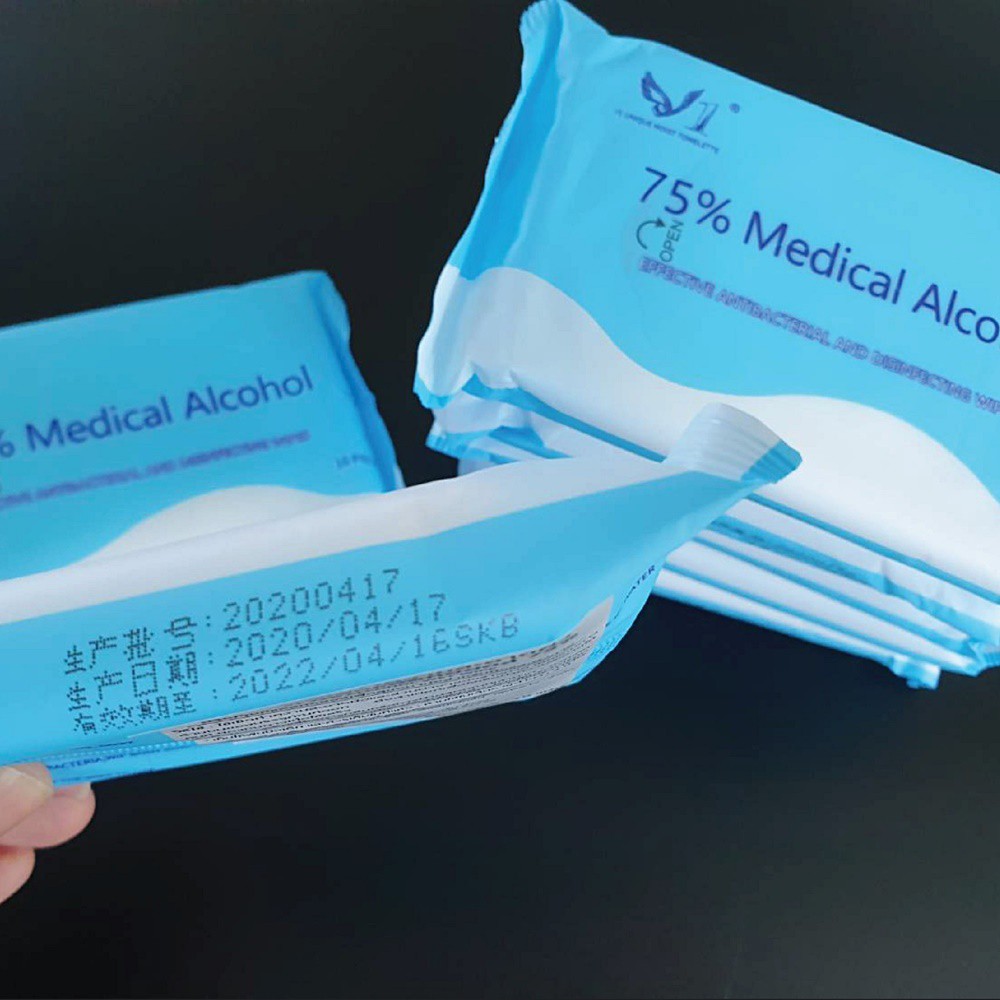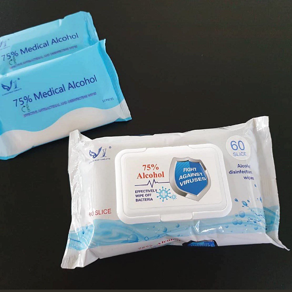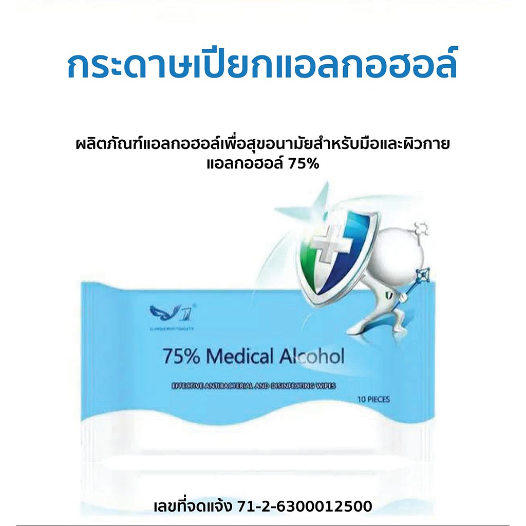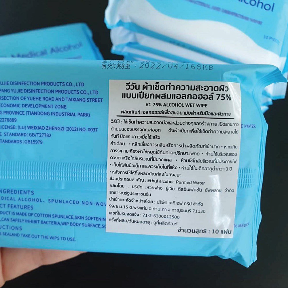 กระดาษทิชชู่เปียกแอลกอฮอล์ ยี่ห้อ V1 75% alcohol wet wipe 75% ทำลายเชื้อไวรัสและแบคทีเรียได้ 99%