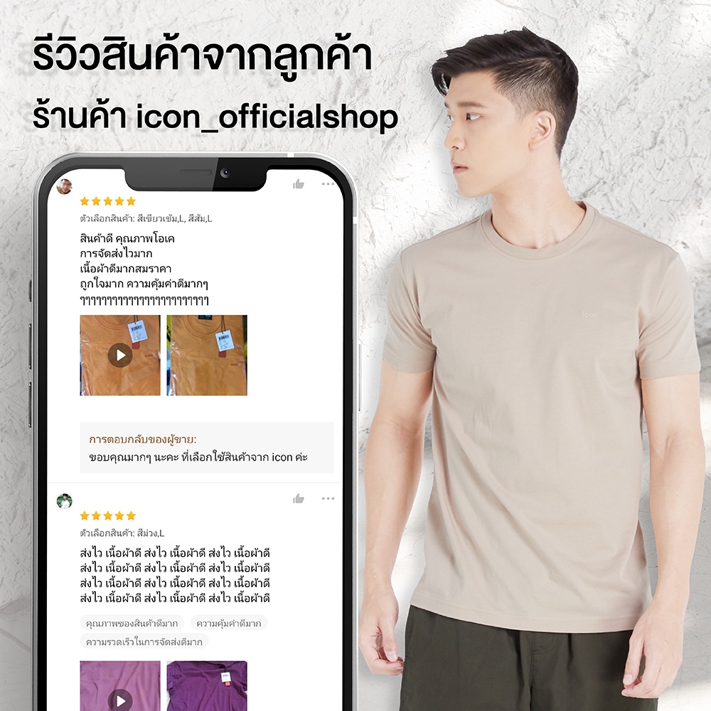 Icon (ไอคอน) ลดล้างสต๊อก!! เสื้อยืดผู้ชาย คอกลม T- Shirt ผ้าคอตตอน ใส่สบาย มีให้เลือก 8 สี - IKT6045
