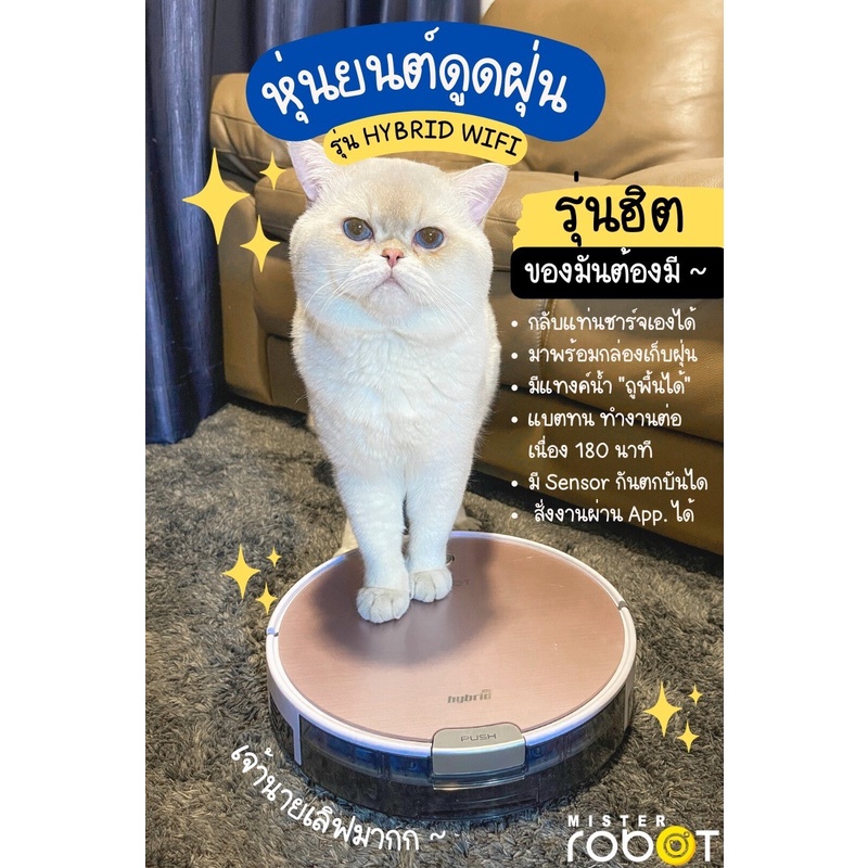 Mister Robot หุ่นยนต์ดูดฝุ่น ถูพื้น อัจฉริยะ รุ่น HYBRID WIFI ยอดนิยม สั่งงานผ่านรีโมท หรือ App ได้