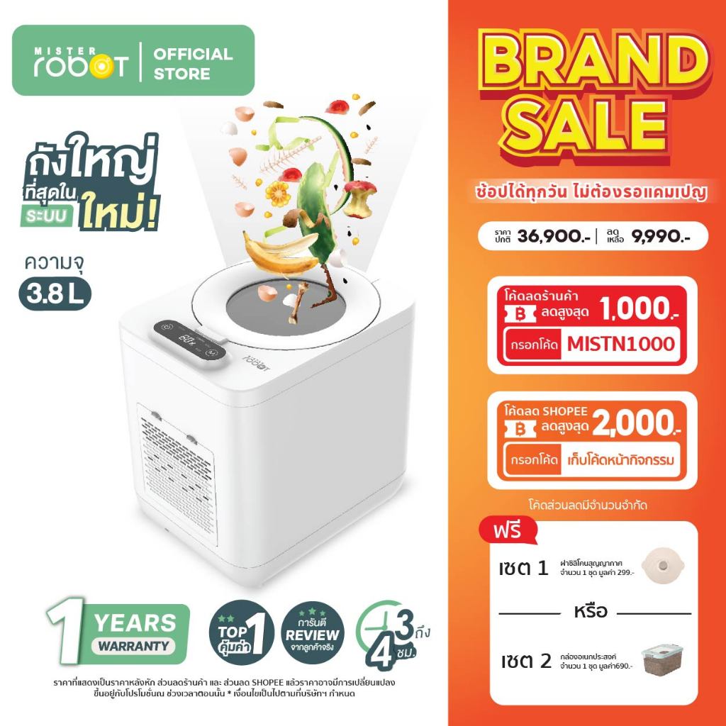 Mister Robot เครื่องย่อยเศษอาหารอัตโนมัติ Food Waste Disposer รุ่น BIG CARE ดีไซน์ใหม่ใหญ่กว่าเดิม ขนาด 3.8L