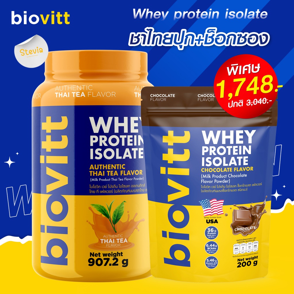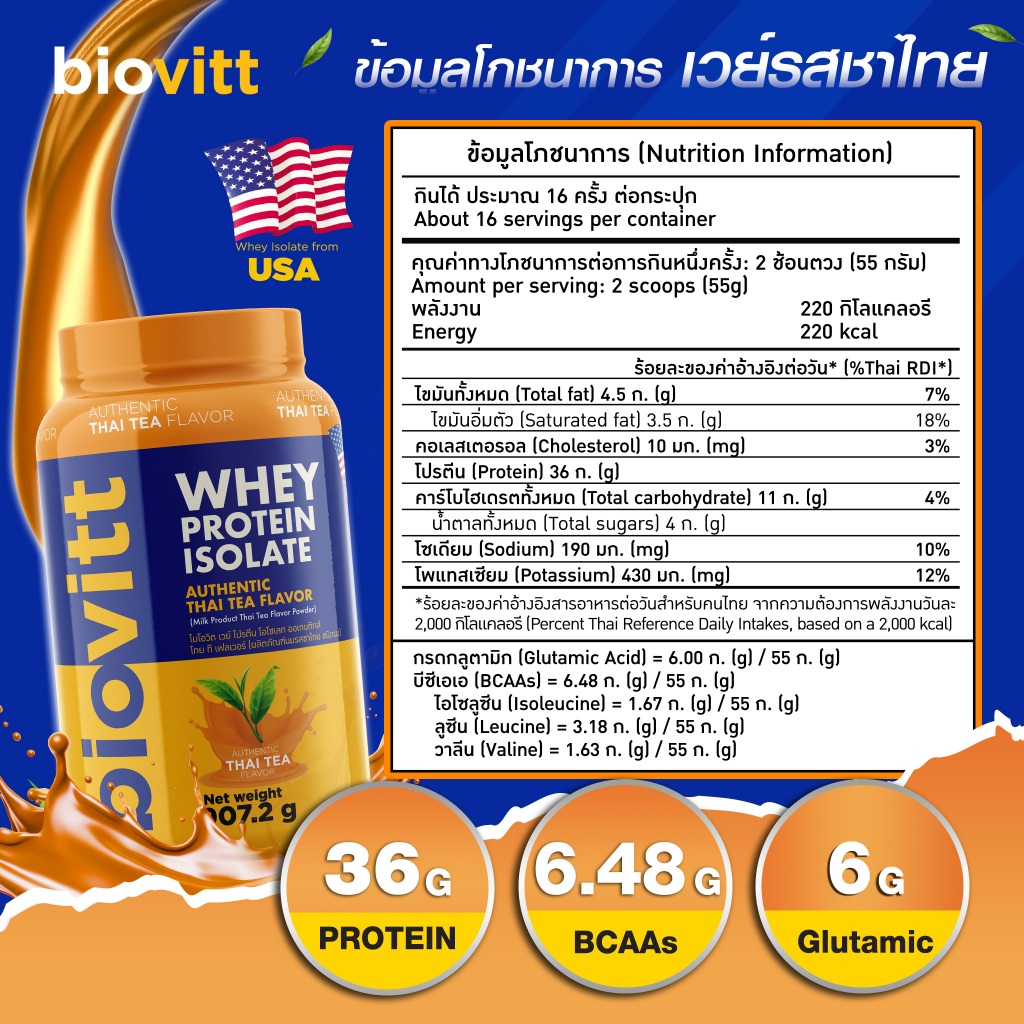 (เซ็ตชาไทย) สูตรใหม่ biovitt Whey Protein Isolate เวย์โปรตีน ไอโซเลท หอมชาไทย โปรตีนสูง