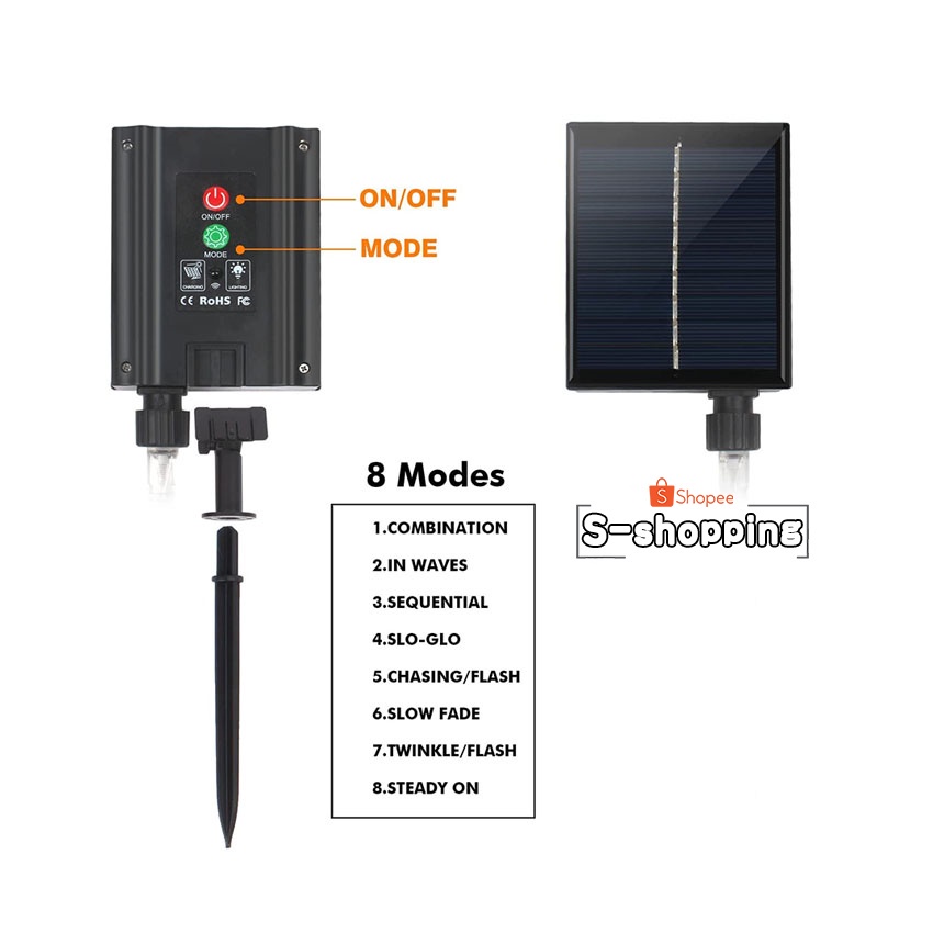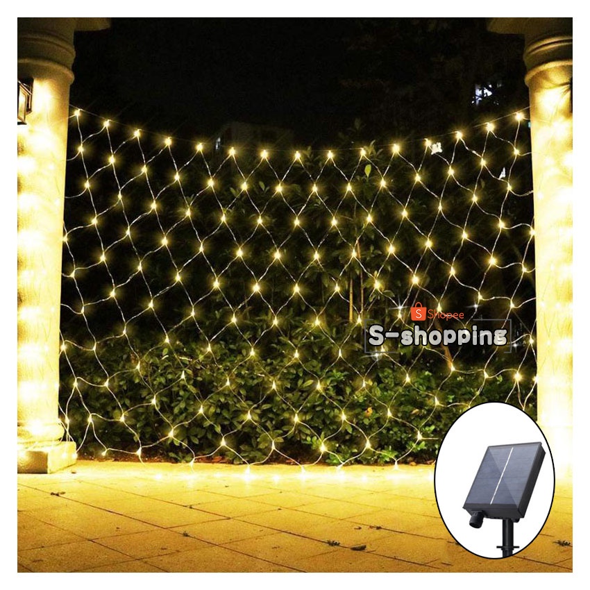 ไฟเหลือง ไฟตาข่าย x-led 3x2m 192 LED 8โหมด ไฟตกแต่งบ้าน ใช้พลังงานแสงอาทิตย์โซล่าเซลล์ เพิ่มความสวยงาม