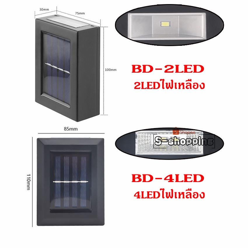 BD-2LED ไฟเหลือง Solar light 2 LED ติดรั้วบ้าน เพิ่มความสวยงาม