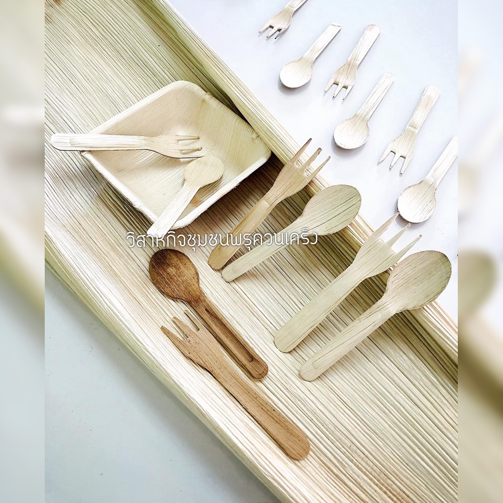 ช้อนส้อมกาบหมาก 12 ชิ้น (6คู่) ช้อนส้อมใช้แล้วทิ้ง ไม่หักไม่กรอบ วัสดุธรรมชาติ