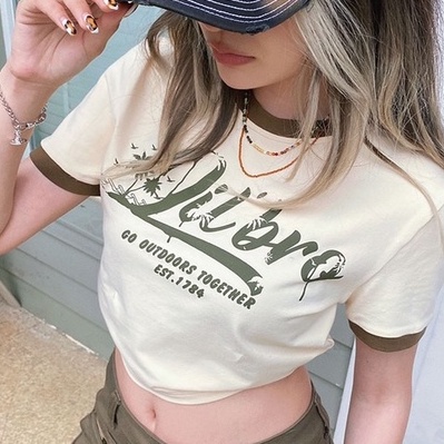 เสื้อยืดแฟชั่น ผ้าคอตตอล สายฝอ สกรีนลาย เสื้อผู้หญิง เอวลอย ตัดขอบ ดีไซน์สวย ผ้าเบาสบาย