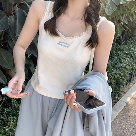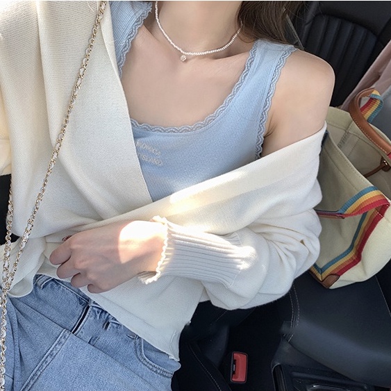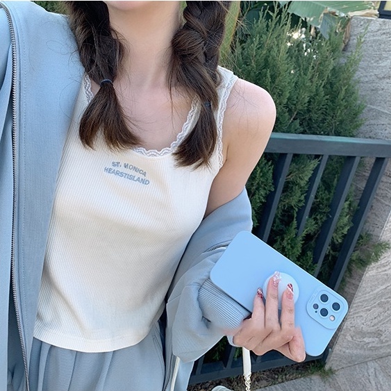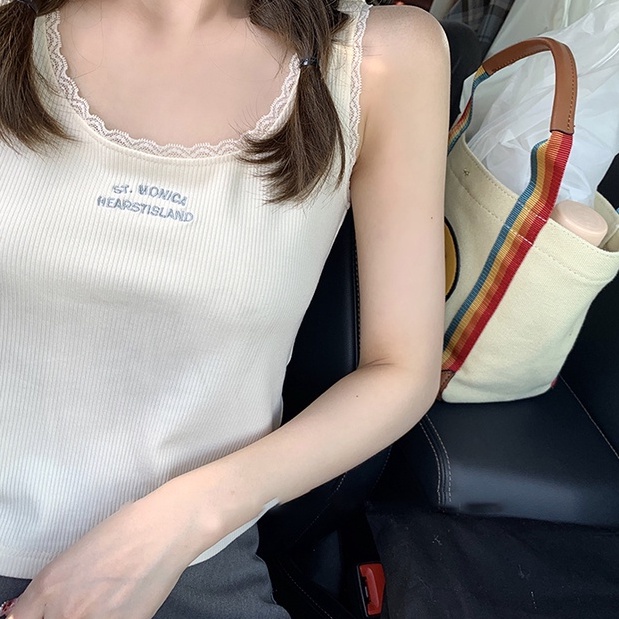 เสื้อผ้าเเฟชั่น รุ่น E010 เสื้อกล้ามผู้หญิง คอเว้า เสื้อแขนกุด ขอบระบายริ้วทรงสวย เนื้อผ้าดี