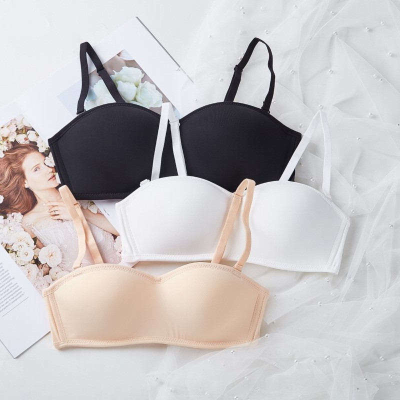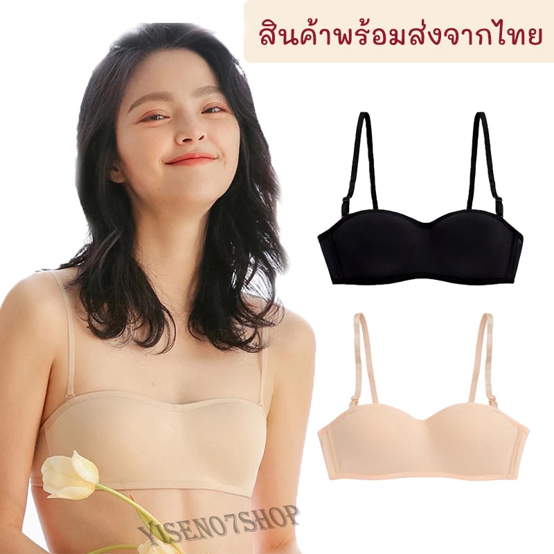 เกาะอกแฟชั่น บราเกาะอก เกาะอกไร้ขอบ ตะขอหลัง มีแถบกันลื่น ถอดสายได้ สีดำสีขาว