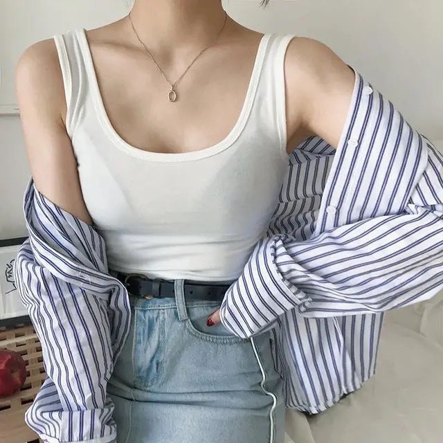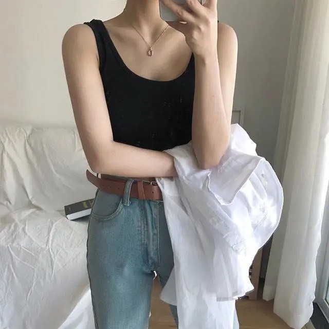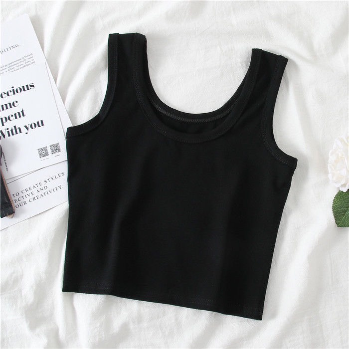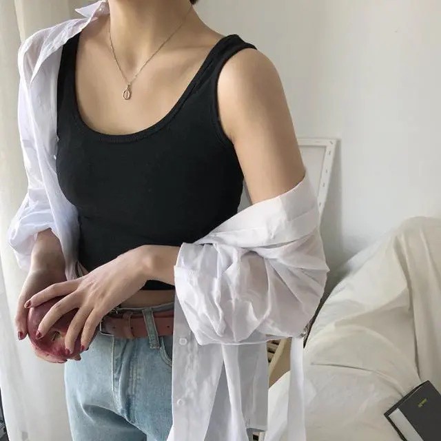 เสื้อครอป กล้าม สายเดี่ยว ผู้หญิง รุ่นE-001 เอวลอย สีพื้น ผ้าคอตตอนอย่างดี สีดำสีขาวสีเทา