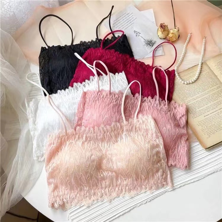 บราลูกไม้ สายเดี่ยว ชุดชั้นในผู้หญิง เนื้อผ้าเกรดเอ สายเส้นเล็ก ฟองน้ำถอดได้ ใส่สบายไม่กดทับ