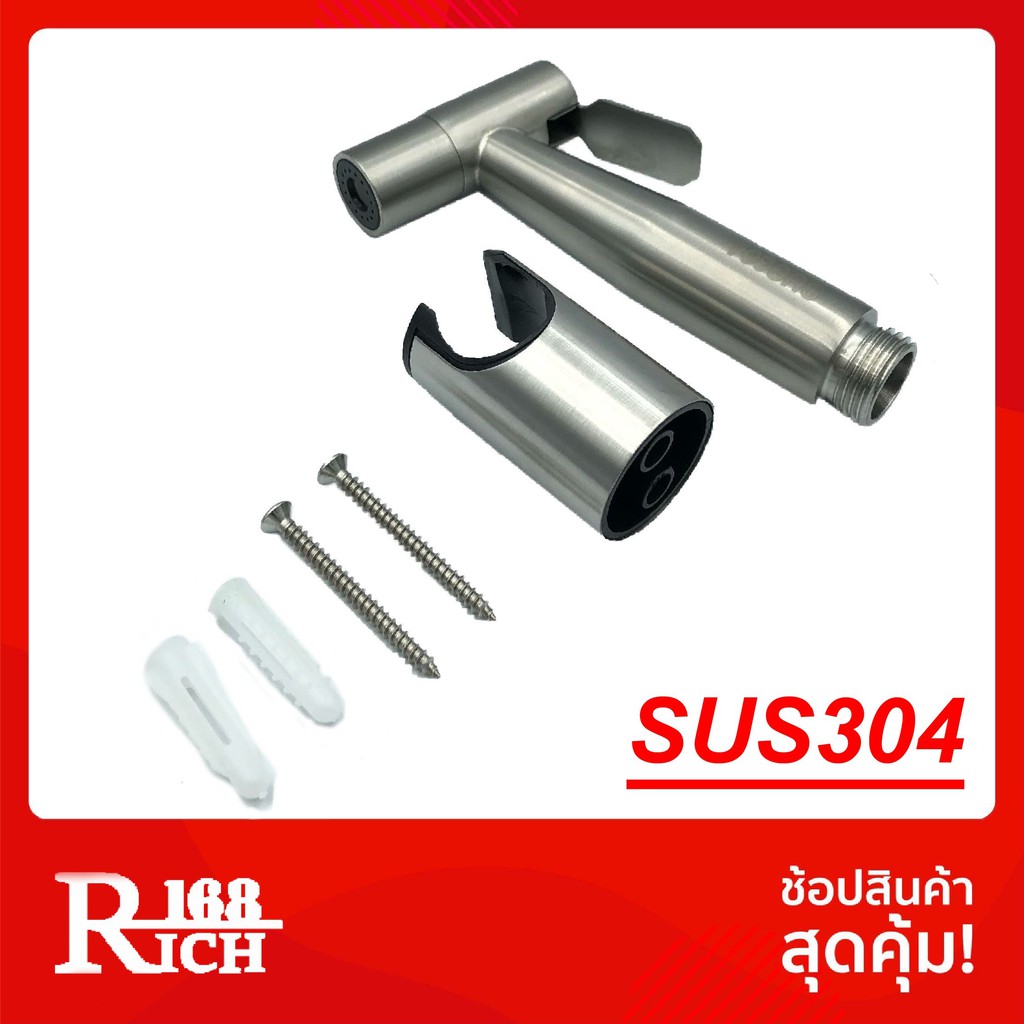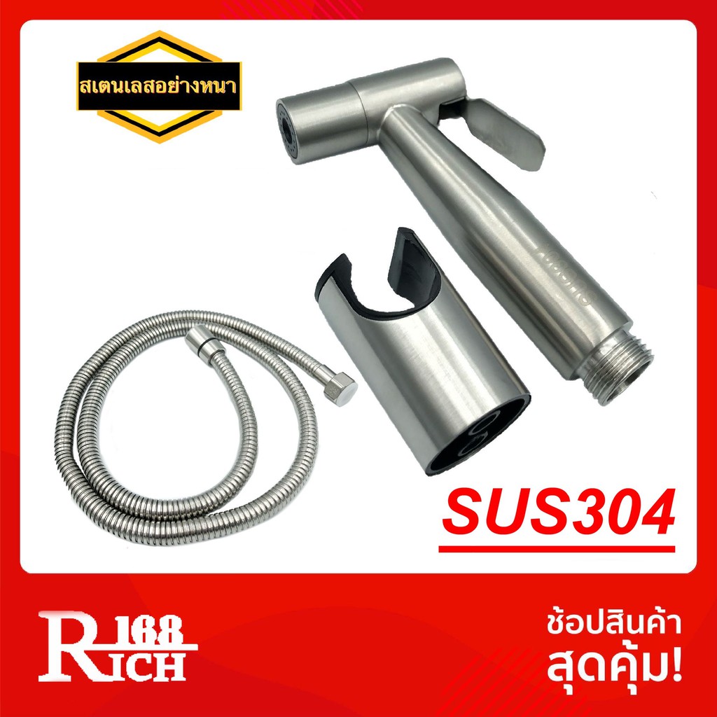 1811 SS (SUS304) | ชุดสายชำระ สายชำระ สเตนเลส304 หัวฉีดชำระ + ขา + สายสเตนเลส 1.2 เมตร สี สเตนเลส SS | Rich168Trading