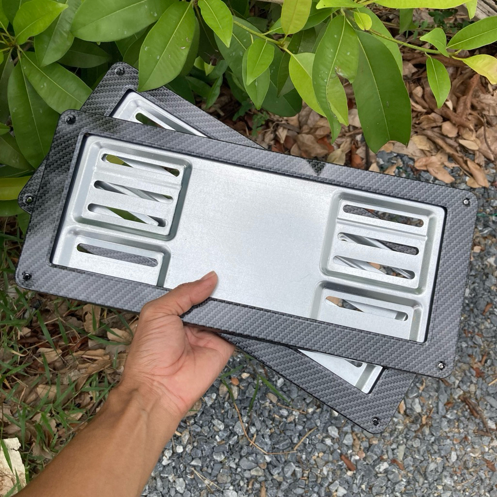 กรอบป้ายทะเบียนแบบใหม่ แคฟล่า ไทเท มีพลาสติก ด้านในพลาสติก เเสตนเลสแท้ ขนาดมาตราฐาน 1 ชุด มี 2 แผ่น หน้า-หลังครับ