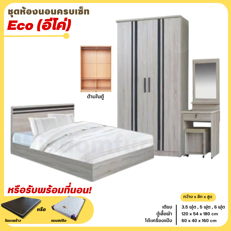 ชุดห้องนอน 3 ชิ้น รุ่น Eco เตียง ตู้ 120 ซม. โต๊ะแป้ง 60 ซม. **ตจว.มีค่าจัดส่ง สอบถามก่อนสั่งสินค้า**