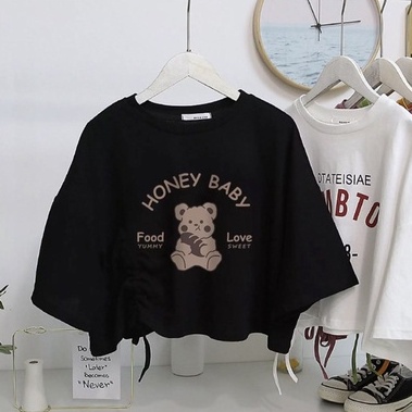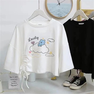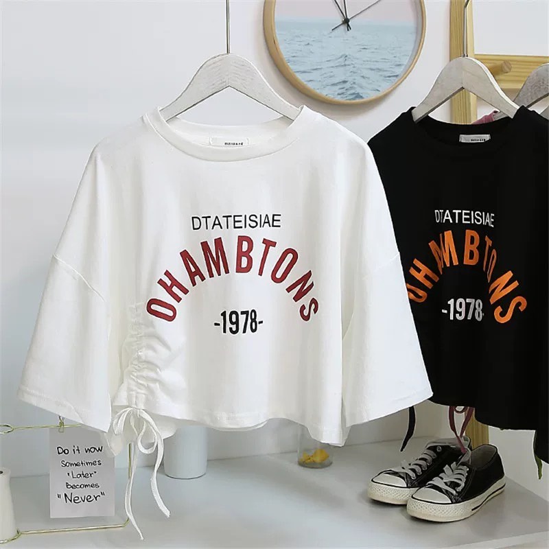 เสื้อยืด เสื้อผู้หญิง เสื้อยืดคอกลมแขนสั้น รูดข้างได้เก๋ๆ สกรีน DTATEISIAE OHAMBTONS -1978-