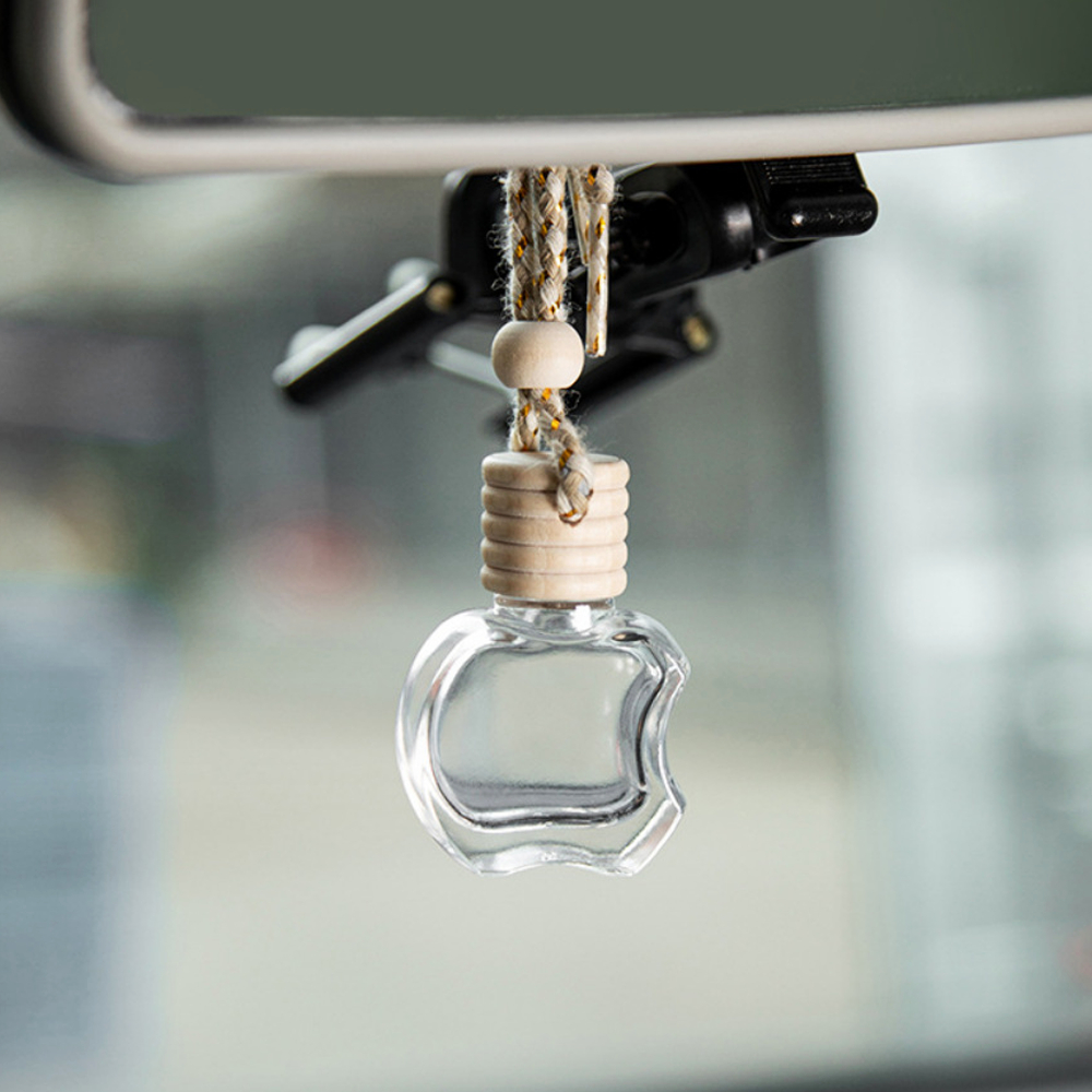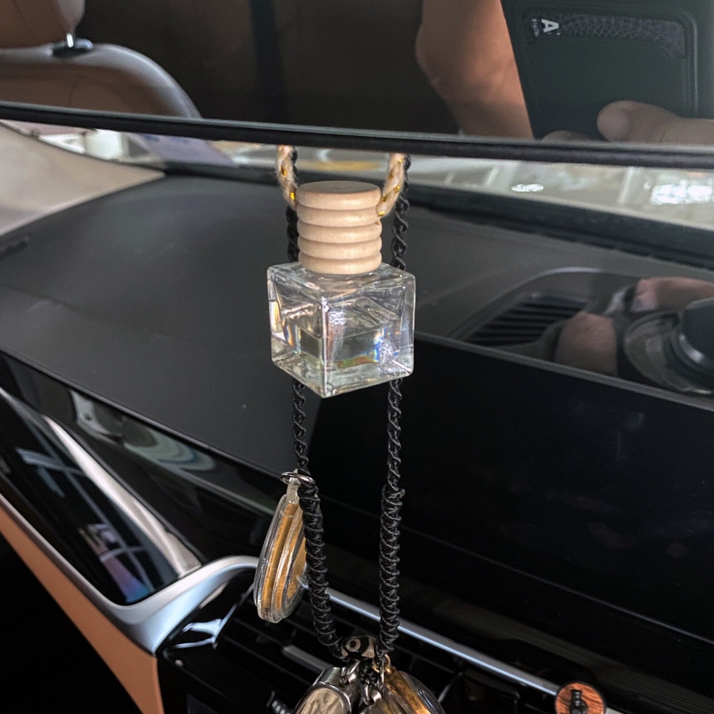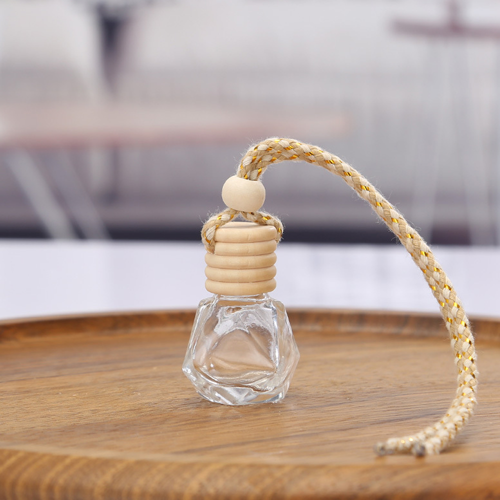 ขวดน้ำหอมเปล่าแบบแขวน 8มล.ในรถยนต์ จี้น้ำหอม ขวดแก้วใสทรงสี่เหลี่ยม ฝาไม้ ใช้แขวนน้ำหอมในรถ ในบ้าน