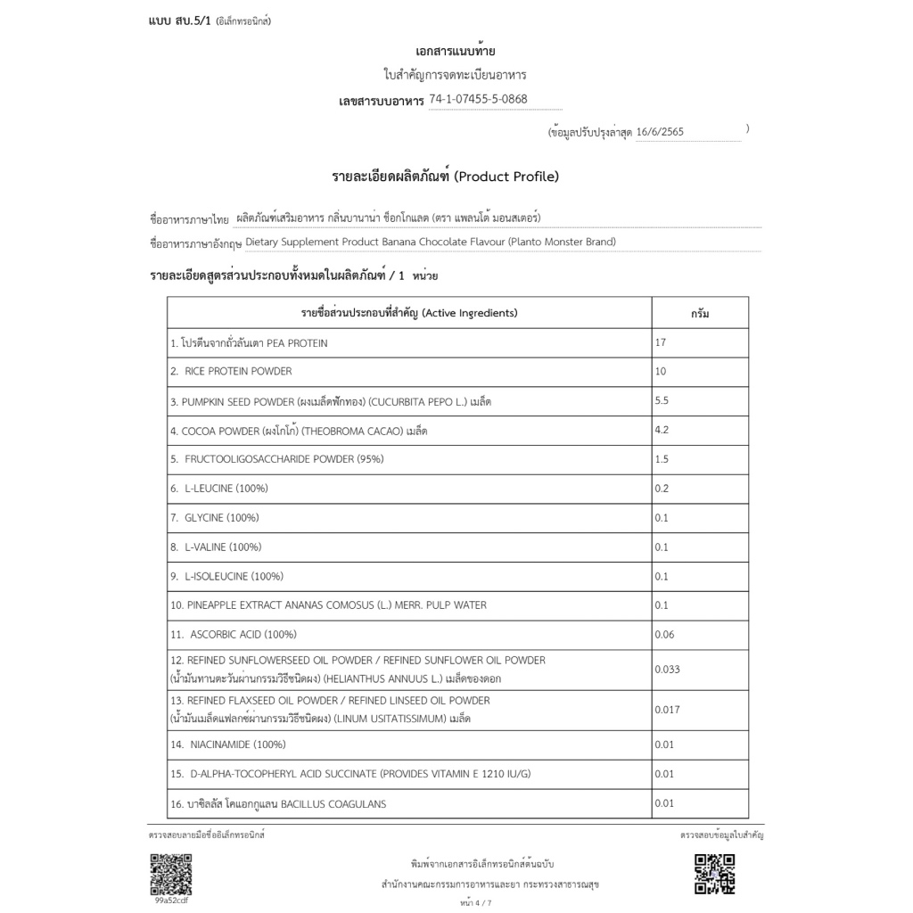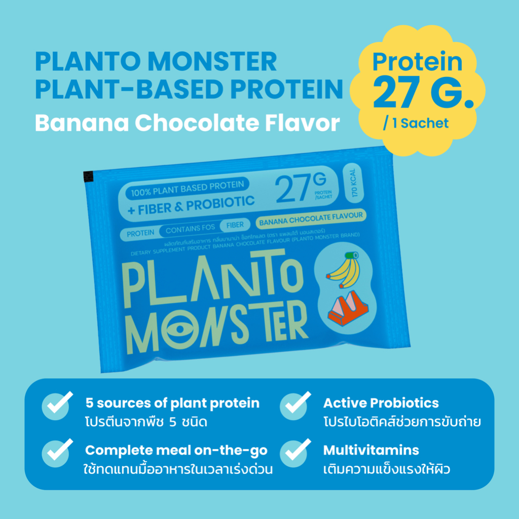 [ 🔥 สินค้าขายดี ] Planto Monster โปรตีนพืช โปรตีน รสบานาน่า ช็อกโกแลต 7 ซอง มีวิตามิน ไฟเบอร์ และพรีไบโอติก