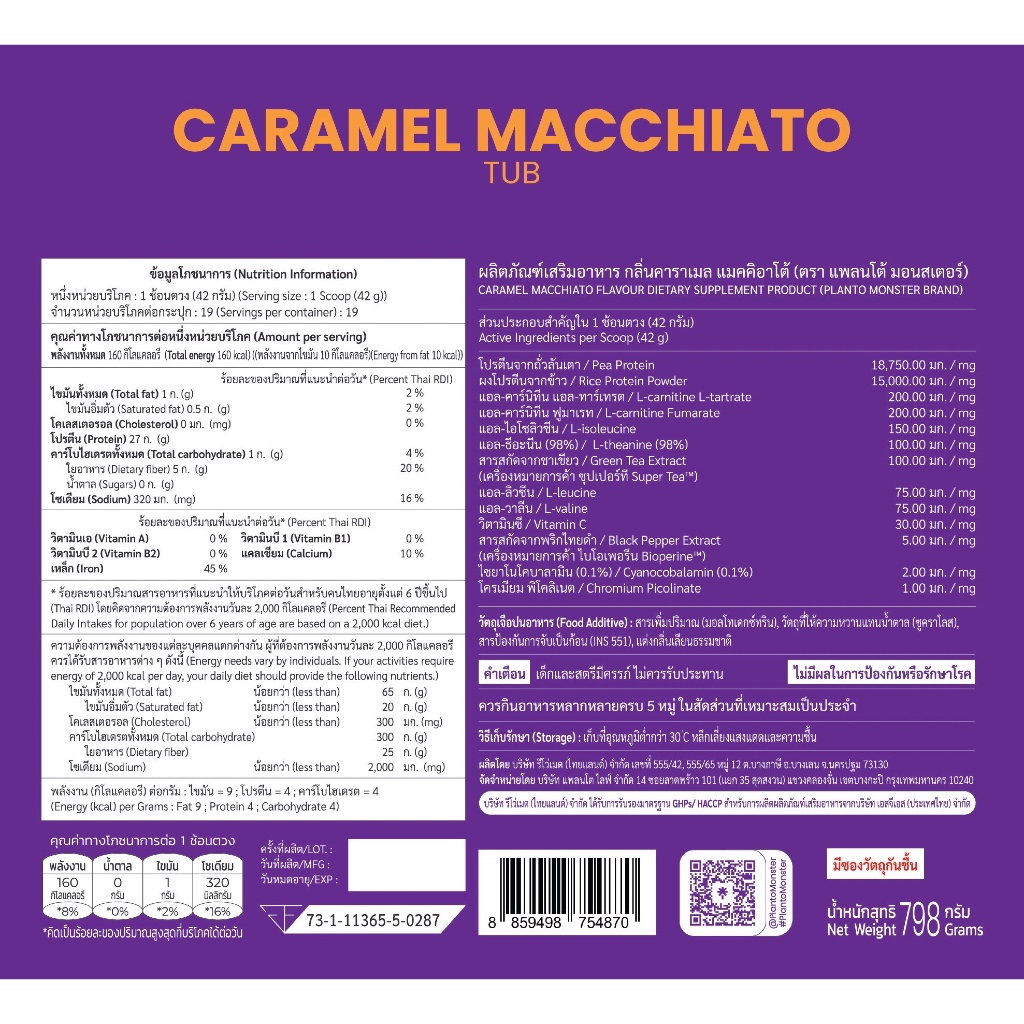 [ สินค้าขายดี 🔥 ] Planto Monster โปรตีนพืช รสคาราเมล มัคคิอาโต้ 7 ซอง โปรตีน มี L-Carnitine และ Supertea มีพรีไบโอติกส์