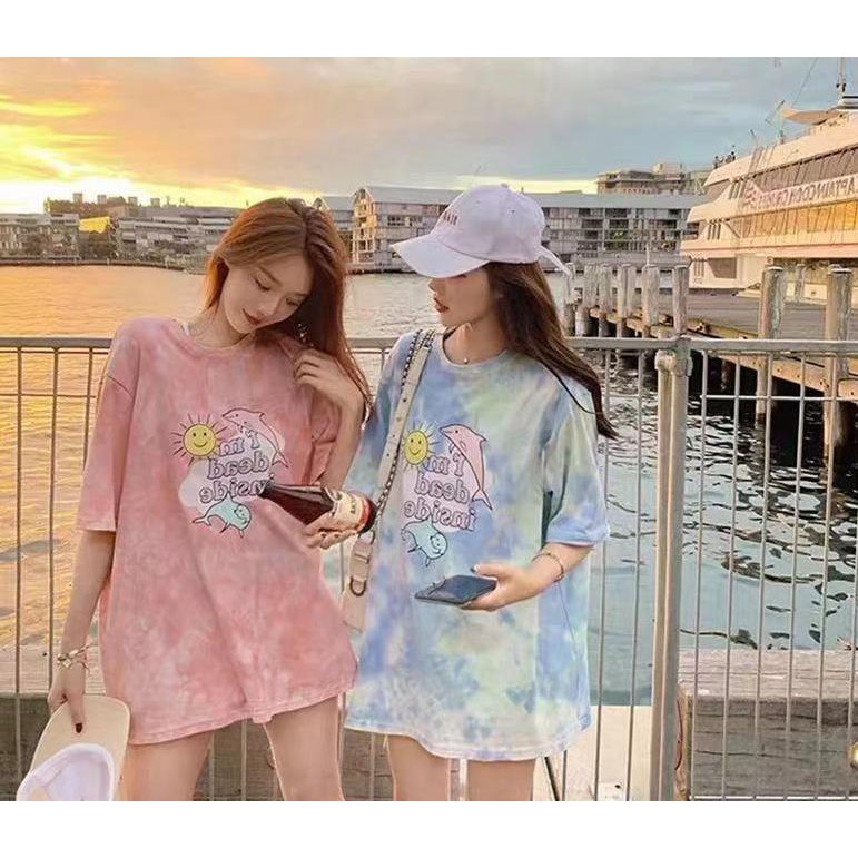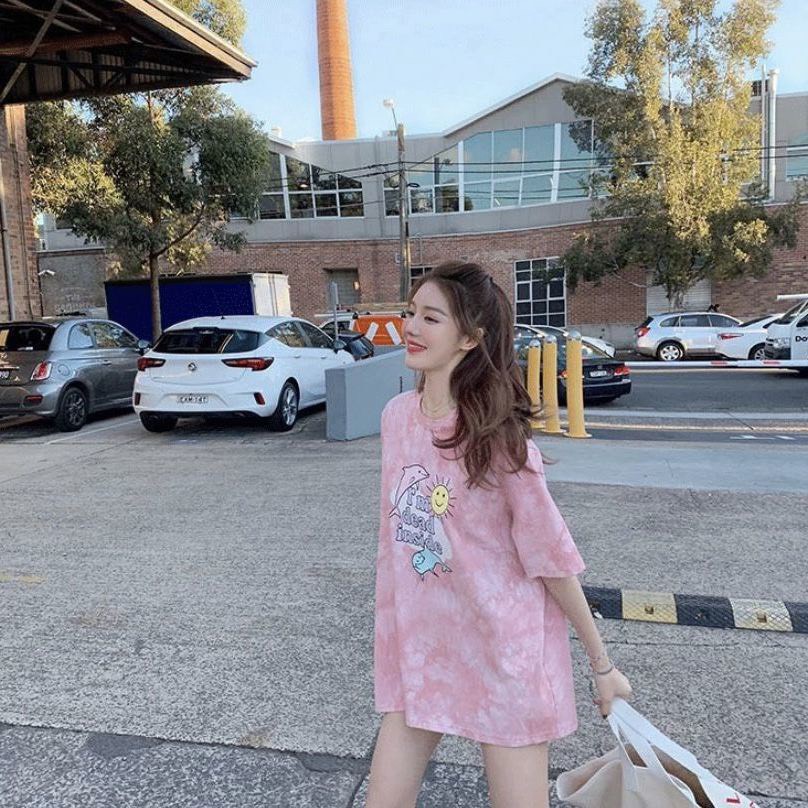 รุ่น-143 ฤดูร้อนใหม่เกาหลีแขนสั้นเสื้อยืดผู้หญิงหลวมผ้ามัดย้อมพิมพ์bottoming สวมใส่่สบาย พร้มส่ง จ่ายปลายทาง