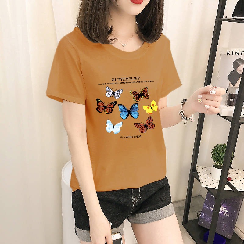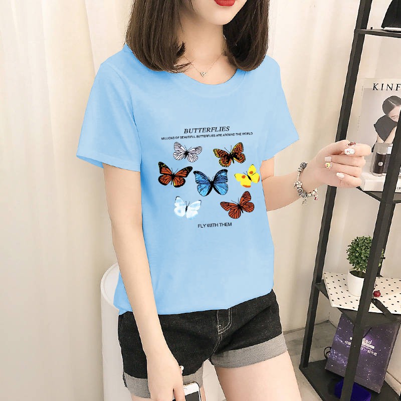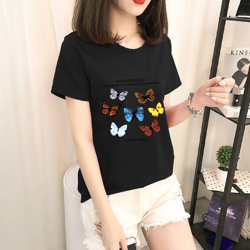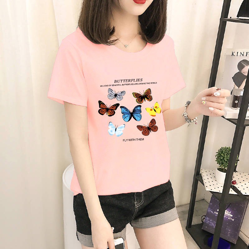 รุ่น121-สินค้า[ขายดี] เสื้อแฟชั่นผู้หญิง แขนสั้น ลายพิมผีเสื้อน่ารักๆ สไตล์เกาหลี สวมใส่สบาย [พร้อมส่ง][เก็บเงินปลายทาง]