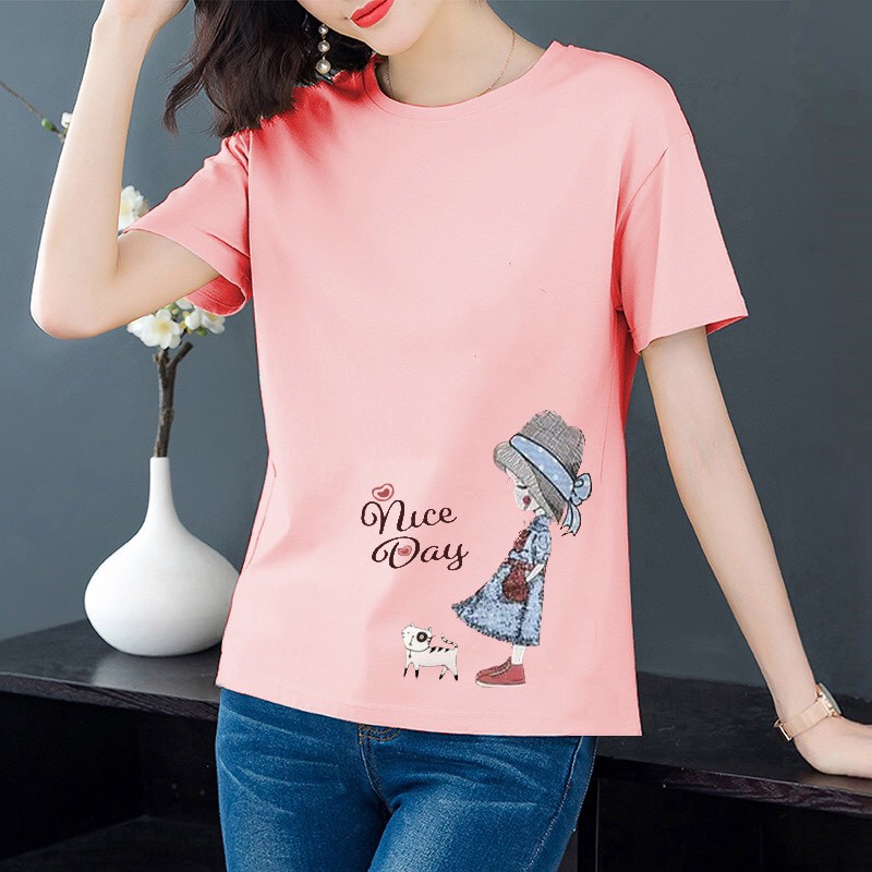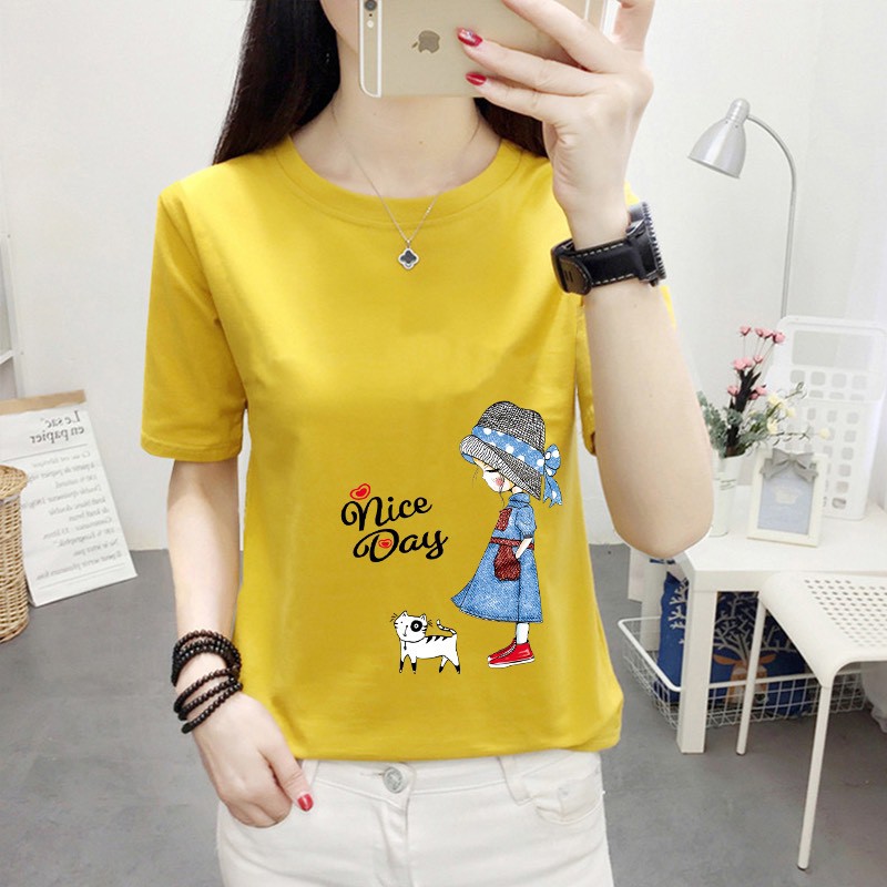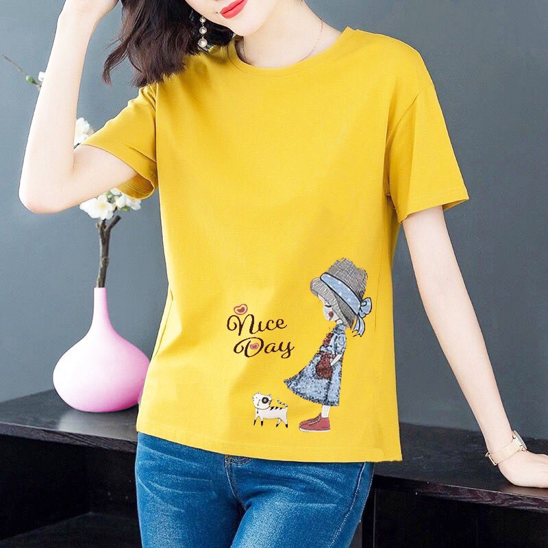 NEWรุ่นA-115ขายดีเสื้อแฟชั่นผู้หญิง แขนสั้น สไตล์เกาหลี สวมใส่สบาย ลายสกรีนน่ารักสดใส [พร้อมส่ง][เก็บเงินปลายทาง]