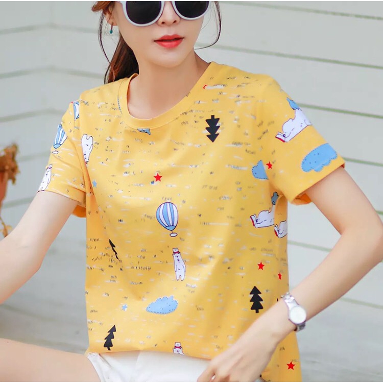 ใหม่ รุ่น A-114 เสื้อแฟชั่นผู้หญิง แขนสั้น สไตล์เกาหลี สวมใส่สบาย [พร้อมส่ง][เก็บเงินปลายทาง] มี3ลาย6สี