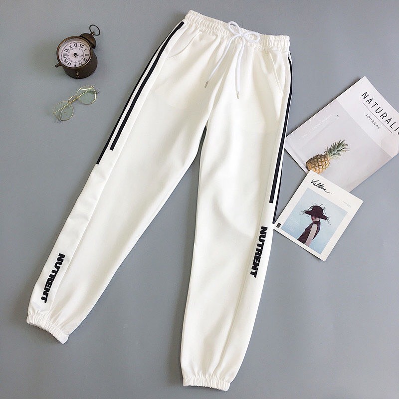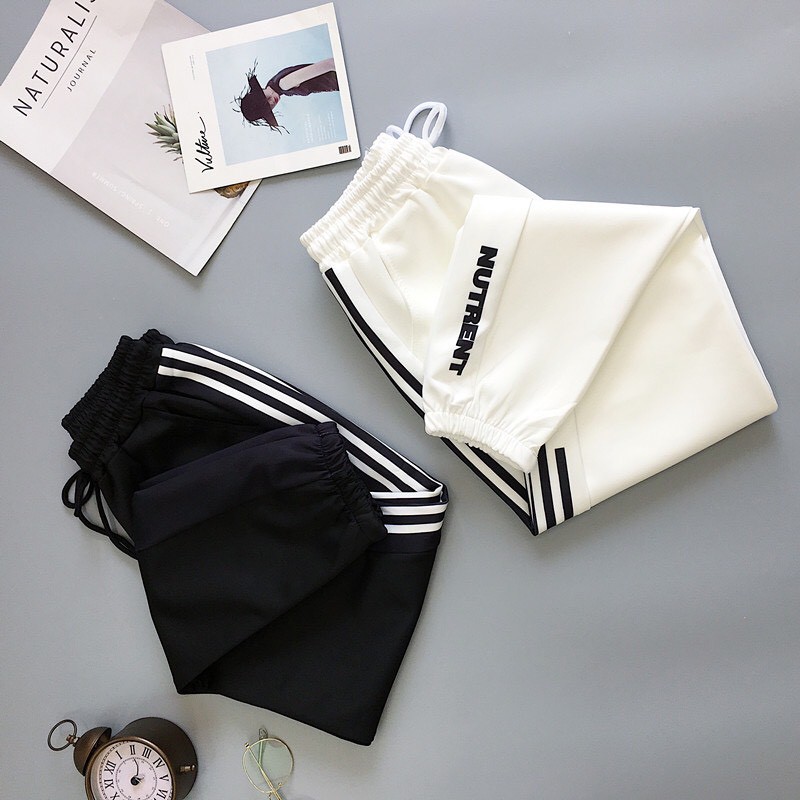 รุ่น-908-กางเกงขายาว เอวยางยืด แต่งแถบข้าง มีกระเป๋าข้าง ผ้านุ่มใส่สบายสไตล์เกาหลี