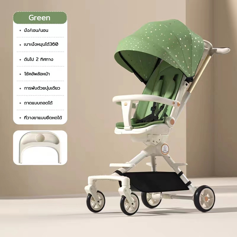 EvianAngel รถเข็นเด็ก รถเข็นเด็กพกพา พับได้ 4 ล้อ เข็นได้ 2ทาง ล้อมีเบรค ปรับเอนอิส(นั่ง/เอน/นอน)