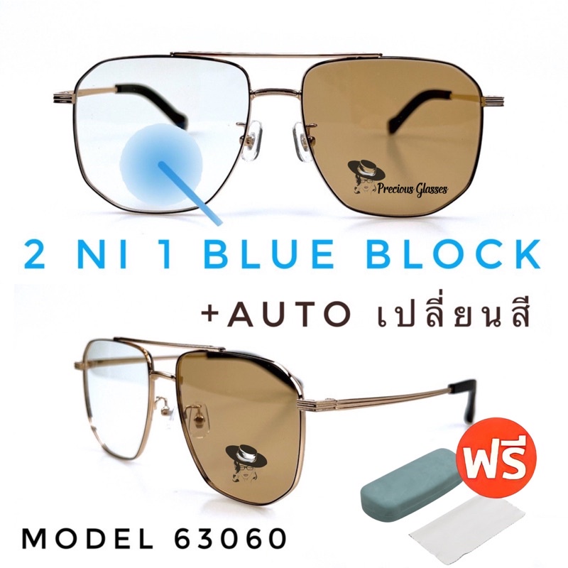 💥 แว่น แว่นกรองแสง 💥 แว่นตา เลนส์ออโต้ + กรองแสงสีฟ้า แว่นตาแฟชั่น แว่นกรองแสงออโต้ แว่นวินเทจ A6306