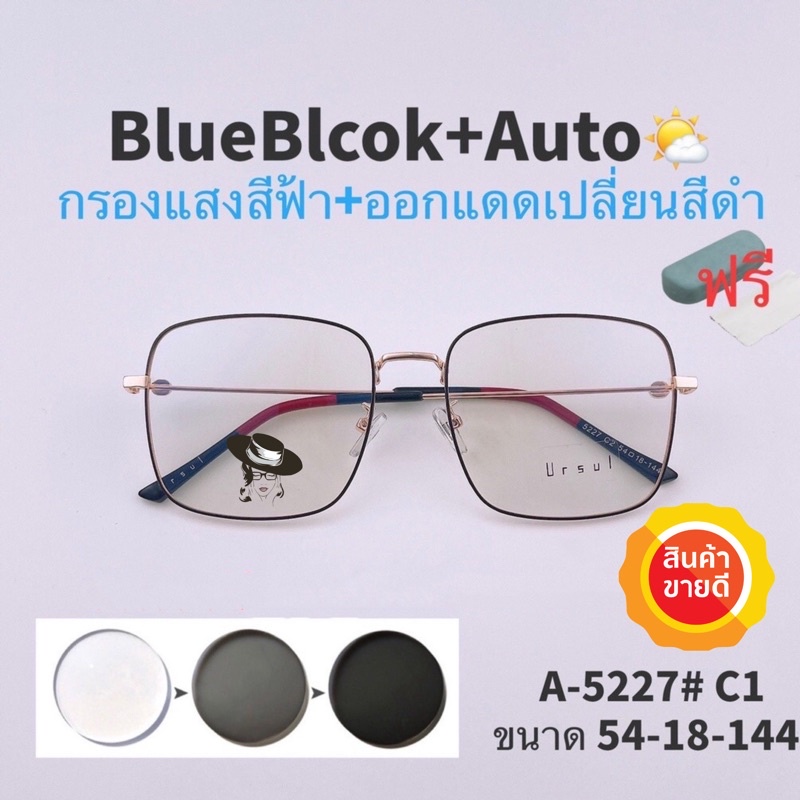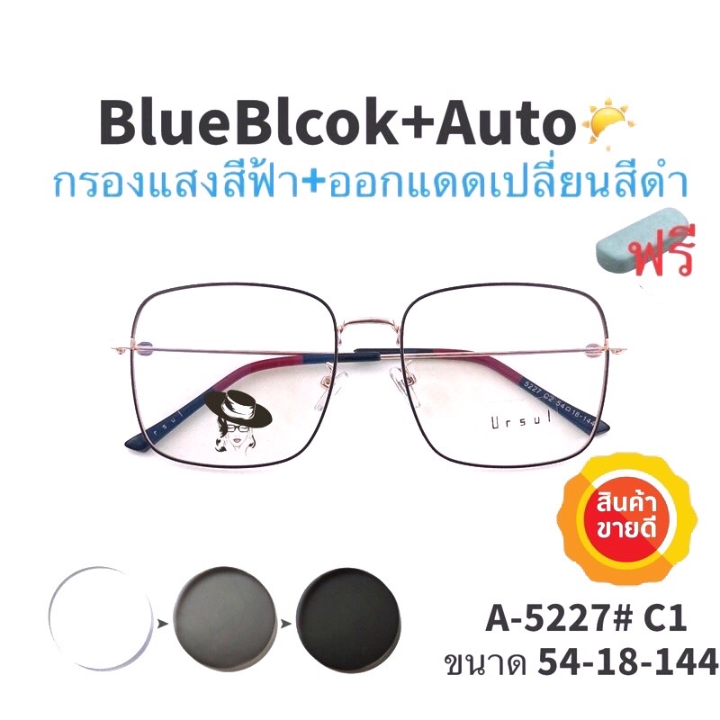 🧡โค้ด15DD825 💥แว่น แว่นกรองแสง 💥 แว่นตา เลนส์ออโต้ + กรองแสงสีฟ้า แว่นตาแฟชั่น แว่นกรองแสงออโต้ แว่นวินเทจ BA5227