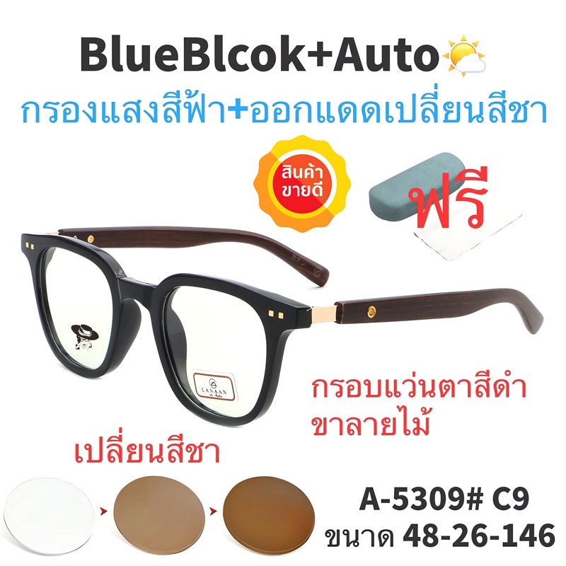 💥แว่น แว่นกรองแสง 💥 แว่นตา เลนส์ออโต้ + กรองแสงสีฟ้า แว่นตาแฟชั่น แว่นกรองแสงออโต้ แว่นวินเทจ BA5309