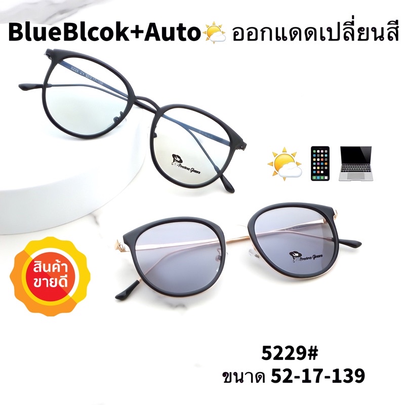 💥แว่น แว่นกรองแสง 💥 แว่นตา เลนส์ออโต้ + กรองแสงสีฟ้า แว่นตาแฟชั่น แว่นกรองแสงออโต้ แว่นวินเทจ BA5229
