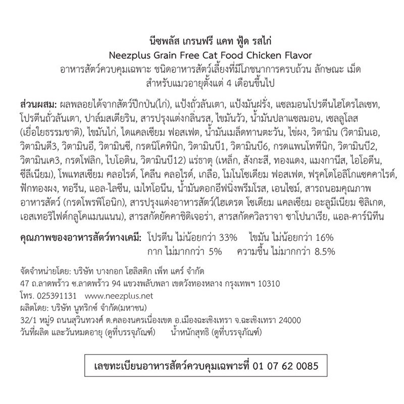 อาหารแมว Neez Plus อาหารแมวเกรดพรีเมียม ขนาด 10 kg