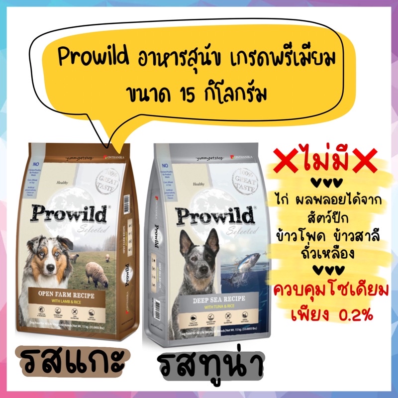 (สั่งแปะกระสอบ ไม่รับเคลมนะคะ) Prowild อาหารเม็ดเกรดพรีเมียม สำหรับสุนัข 2 เดือนขึ้นไป ขนาด 15kg