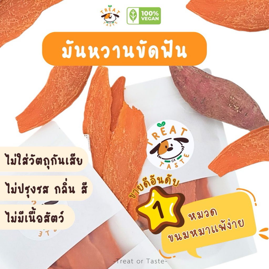 Treat or Taste ขนมมันหวานแท้ 100% ขนมหมาขัดฟัน (ไม่มีเนื้อสัตว์) น้องแพ้ไก่ทานได้ ไม่ปรุงรส ไม่เติมเกลือ