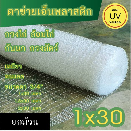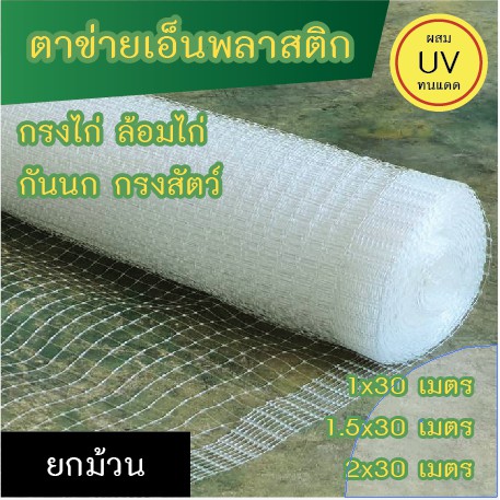 ตาข่ายเอ็นพลาสติก สำหรับกันนก กรงไก่ ทำกรงสัตว์ มี 3 ขนาด ความยาวม้วนละ 30 เมตร (**ตอนส่งจำเป็นต้องพับครึ่ง**)