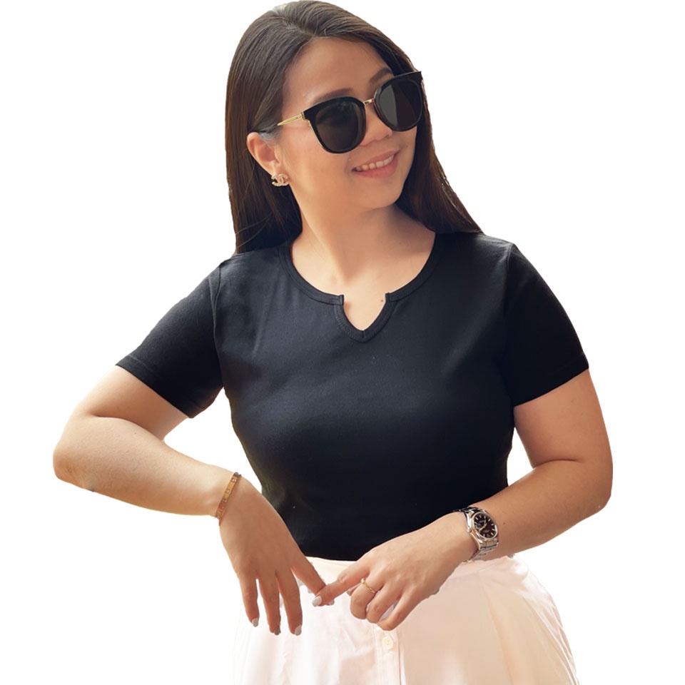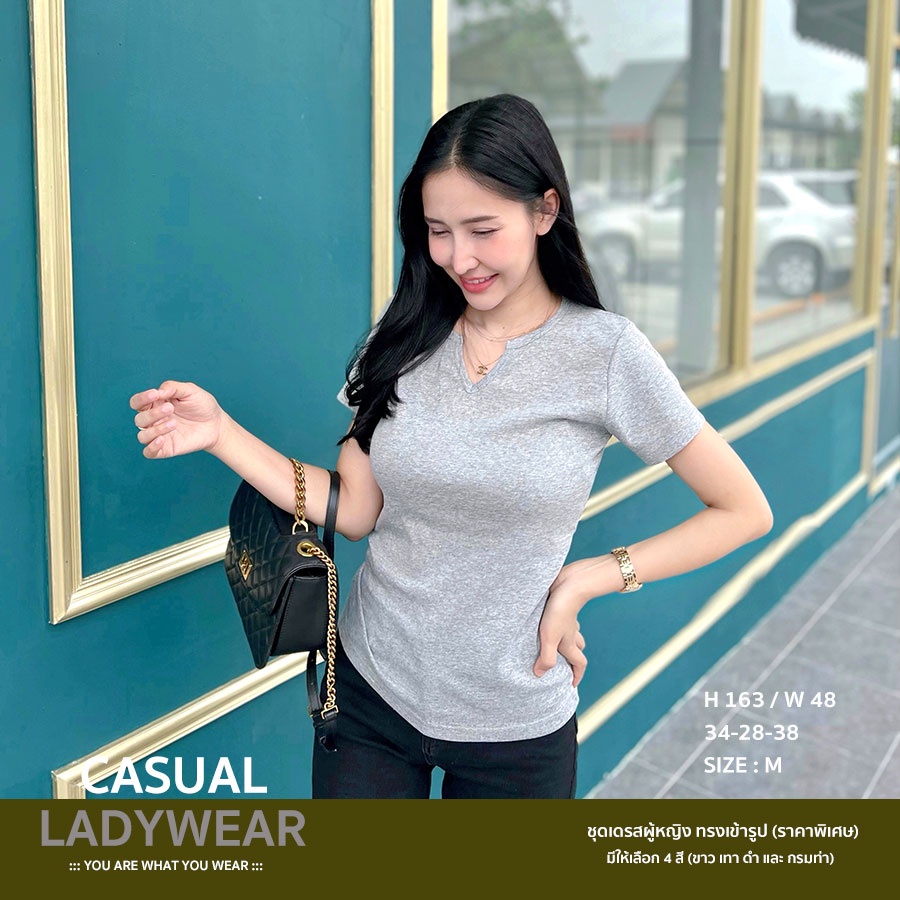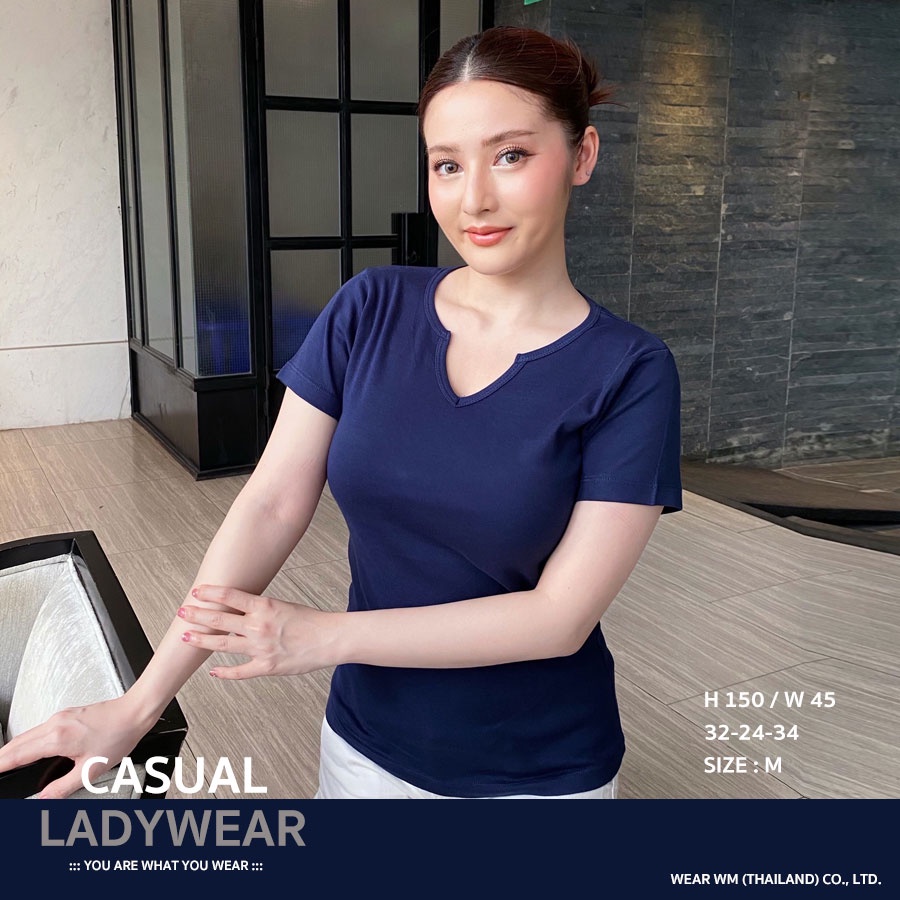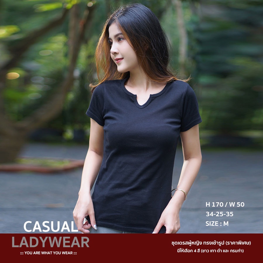 เสื้อยืดคอผ่า สำหรับผู้หญิง เนื้อผ้าคอตตอน 100% ตัดเย็บทรงเข้ารูป สวย ใส่สบาย ระบายอากาศดี