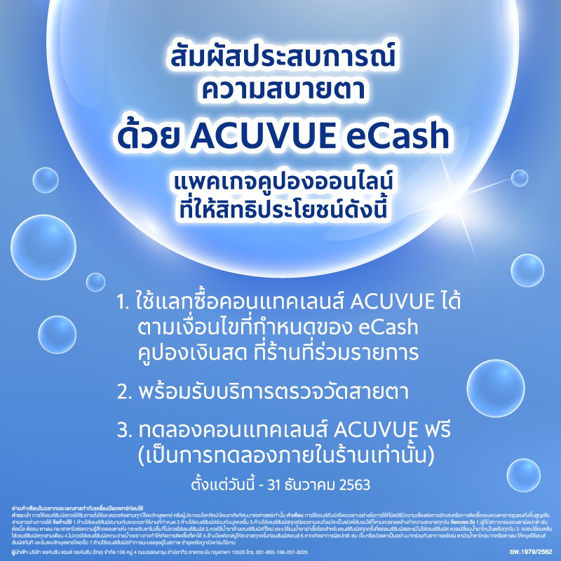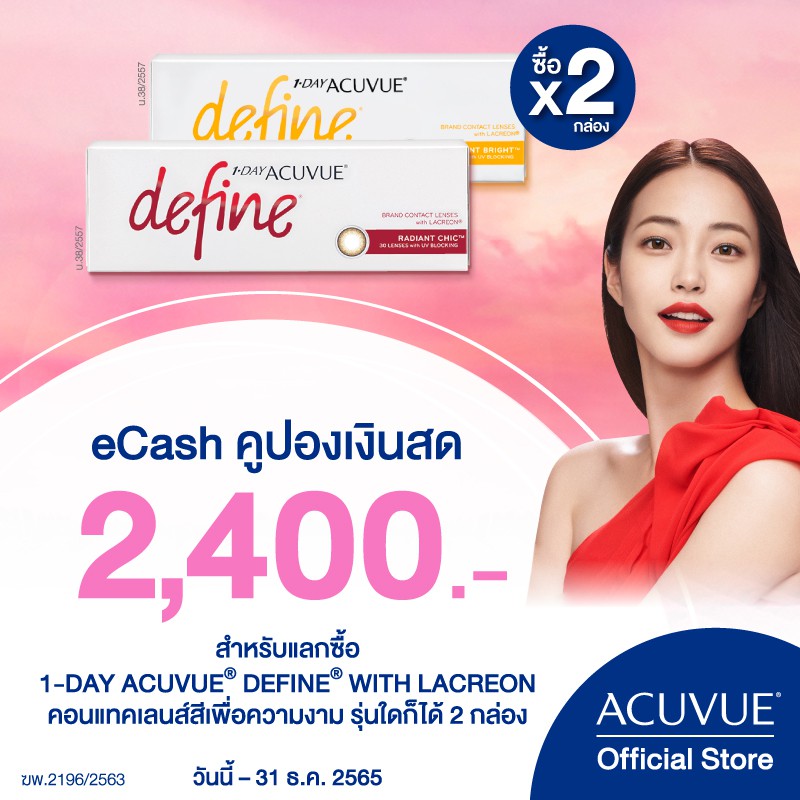 [E-COUPON] ACUVUE คูปองเงินสดสำหรับแลกซื้อ คอนแทคเลนส์ 1 Day ACUVUE Define 2 กล่อง