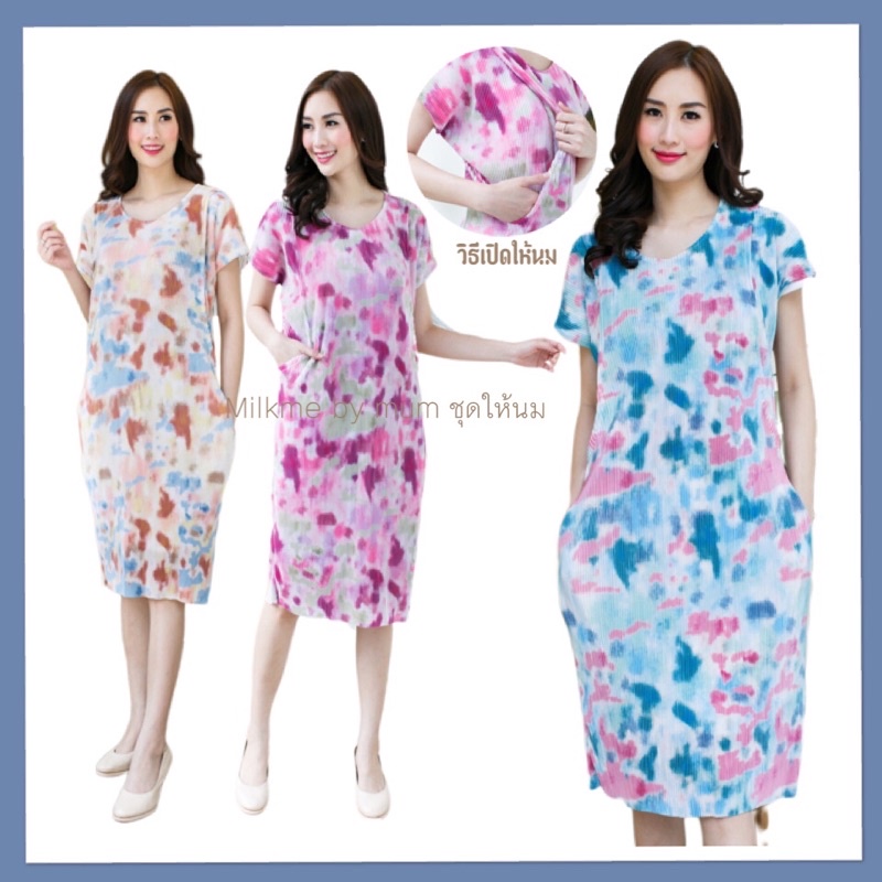 พร้อมส่ง🍁เดรสพลีทคลุมท้อง+ให้นมบุตร🍁มีซับในทั้งชุด ใส่สบาย ไม่ต้องรีด สวยหรูดูแพงสุดๆ