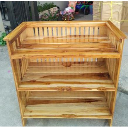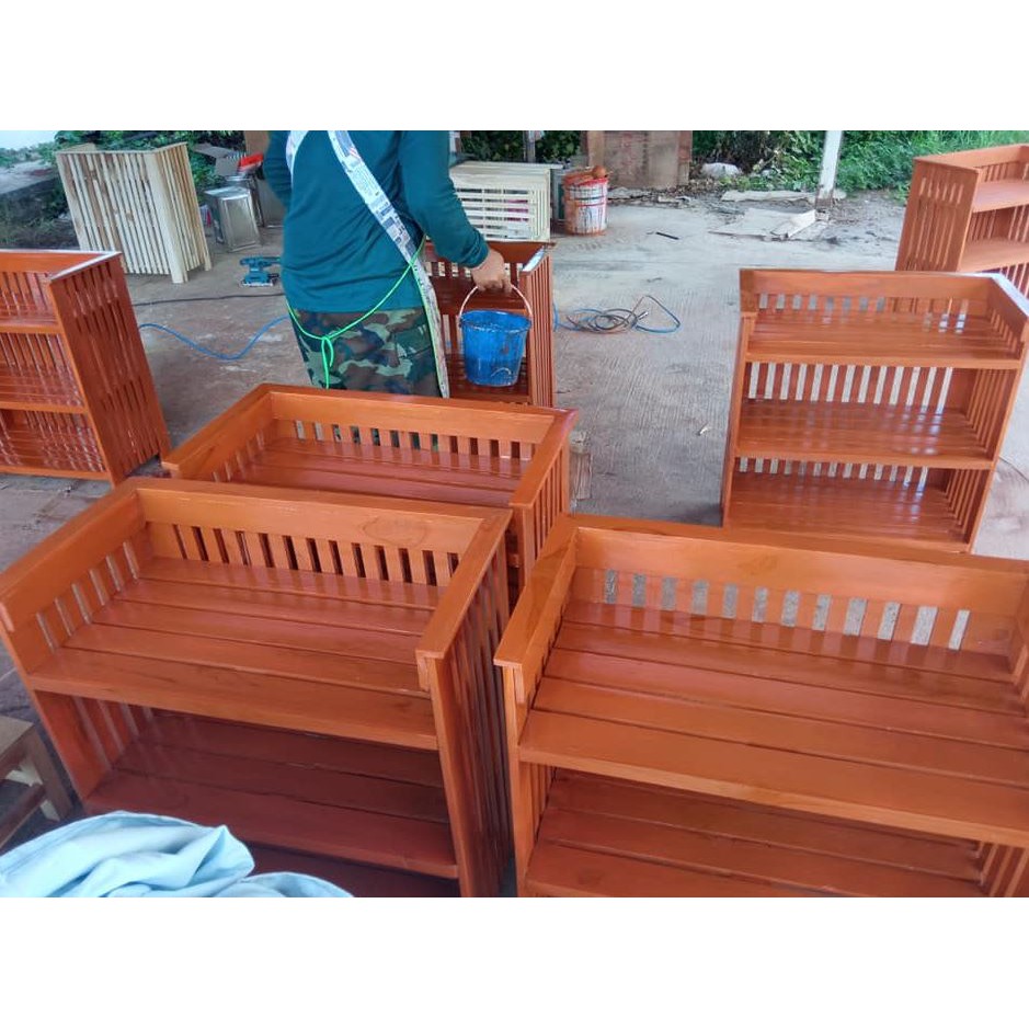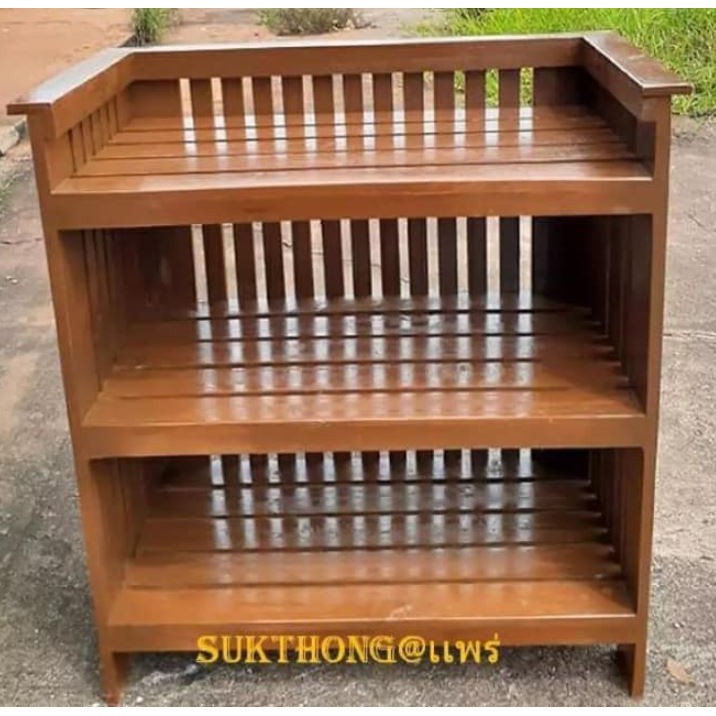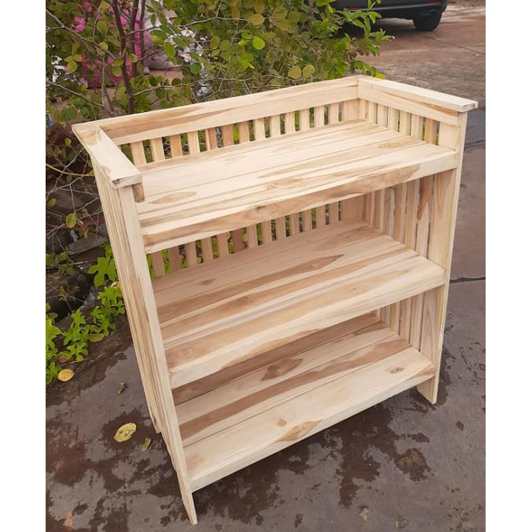 ชั้นวางของไม้สัก 3ชั้น สูง 70ซม. ทำสีเคลือบเงา