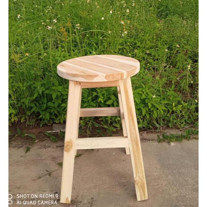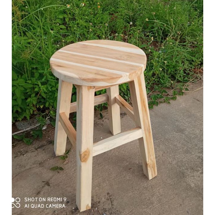 Sukthong@เเพร่ เก้าอี้ไม้สัก เก้าอี้บาร์ สูง 50CM. รุ่น ที่นั่งทรงกลม เก้าอี้เคาน์เตอร์ สีไม้สักดิบธรรมชาติขัดเรียบ