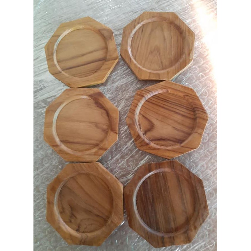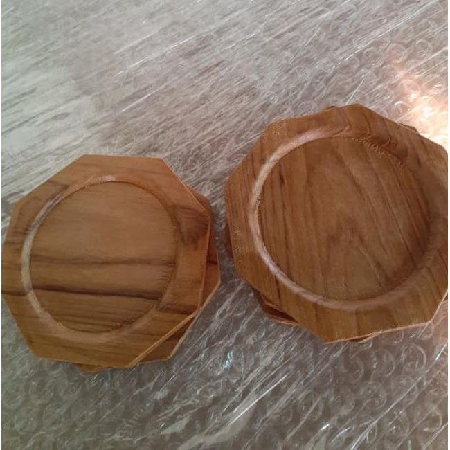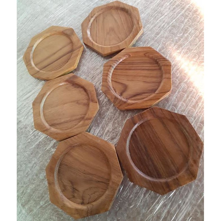Sukthong@เเพร่ แผ่นรองแก้ว ที่รองแก้ว จานรองเเก้ว ไม้สักทอง 9×9 ซม. - คละเเบบ