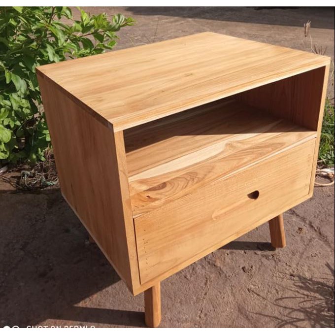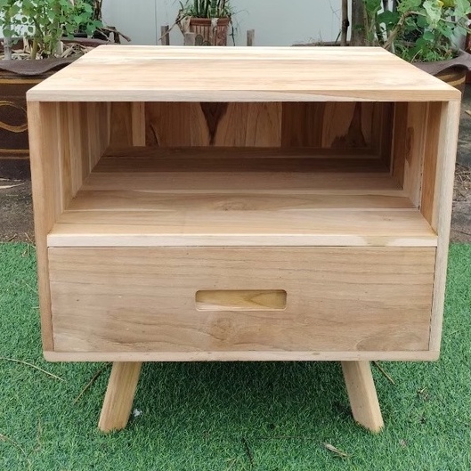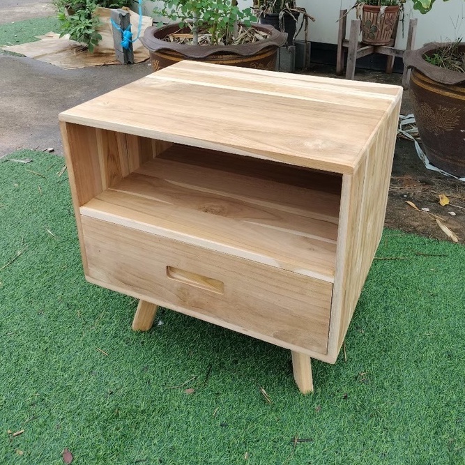 Sukthongแพร่ ตู้หัวเตียง(ใหญ่) สไตล์โมเดิร์นไม้สัก มินิมอล สไตล์ญี่ปุ่น รุ่น 1 ลิ้นชักมือจับหลุมโมเดิร์น 1 ช่องวาง