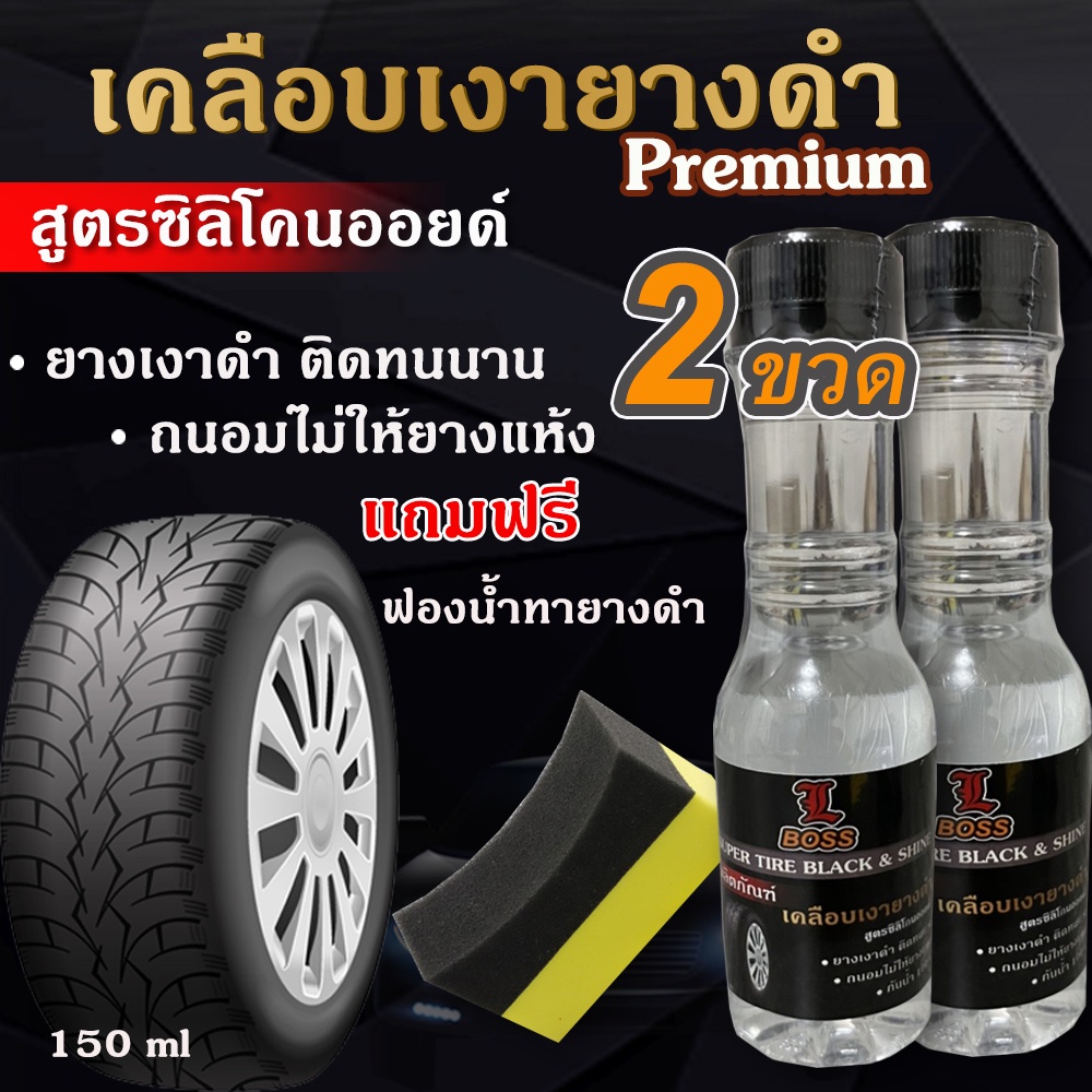 [2ขวด] น้ำยาทายางดำ เคลือบเงายางรถยนต์ น้ำยาเคลือบยางดำ สูตรซิลิโคนออยด์ ยางเงาดำติดทนนาน แถมฟรีฟองน้ำทางยางดำ1ชิ้น