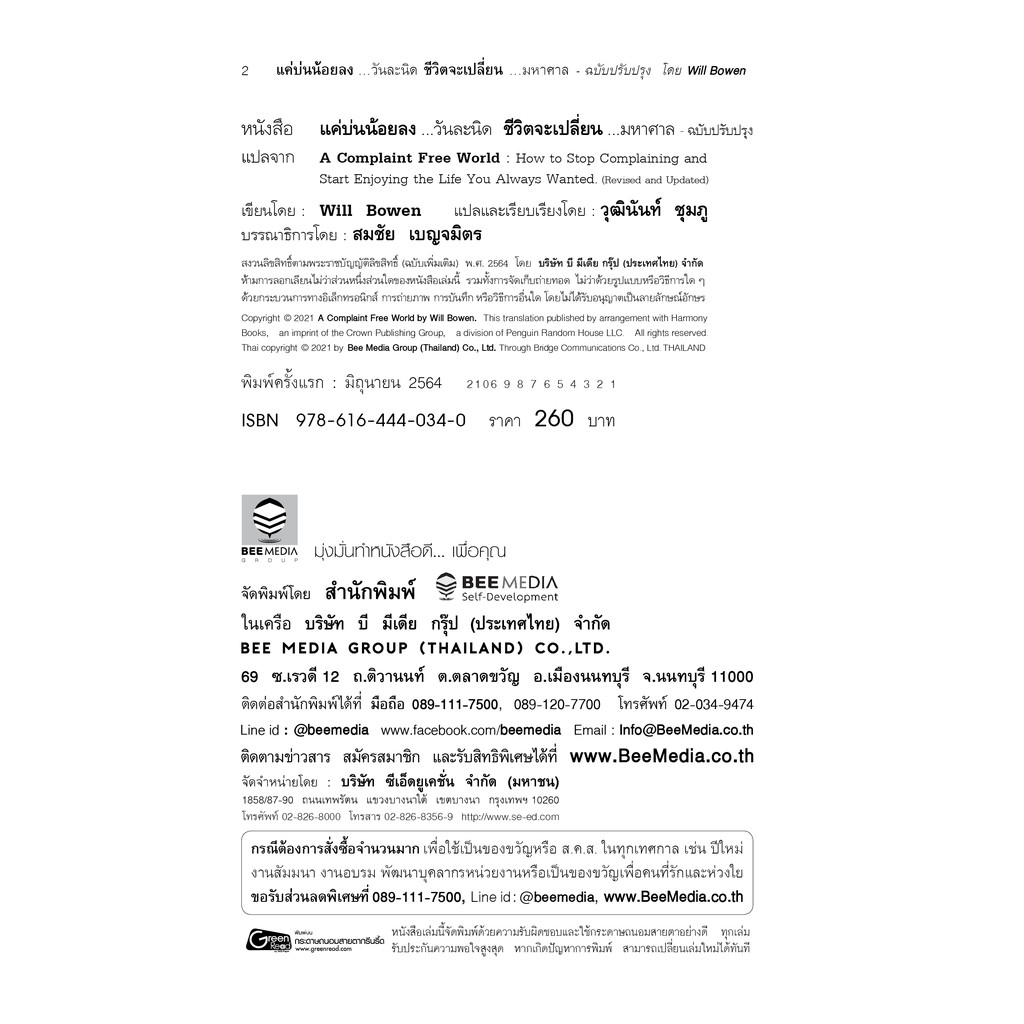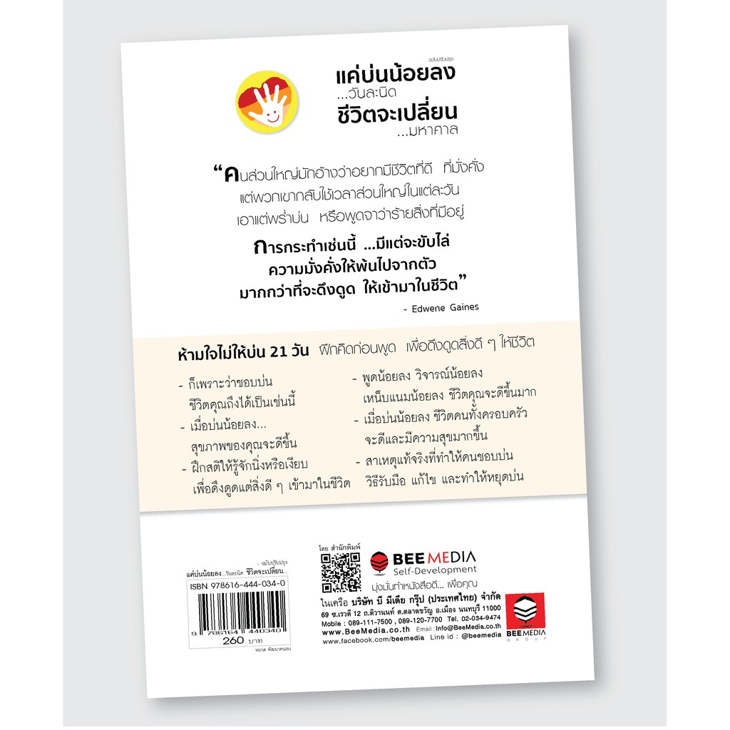 BeeMedia(บี มีเดีย) หนังสือ แค่บ่นน้อยลง ...วันละนิด ชีวิตจะเปลี่ยน ...มหาศาล ฉบับปรับปรุง หนังสือ พัฒนาตนเอง