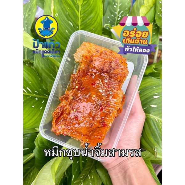 หมึกชุบสามรส หมึกชุบน้ำจิ้ม หมึกเชื่อมสามรส รสชาติกลมกล่อม หวานเค็มเผ็ดเล็กน้อย แช่เย็นยิ่งอร่อย